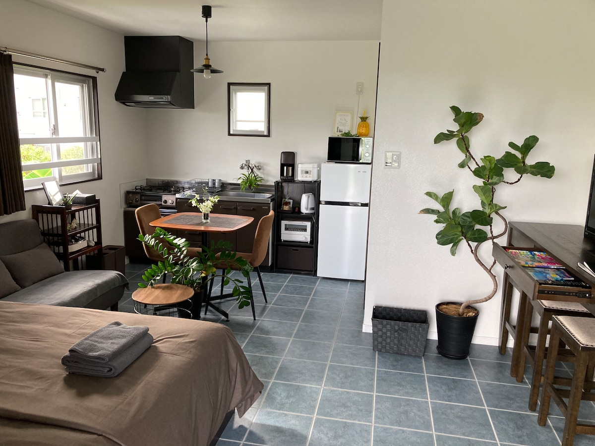 Viešbutis yra vienas seniausių butų, pastatytų 1972 m.Nėra tokių naujausių patogumų kaip naujas viešbutis, tačiau švarus kambarys ir mielas Okinavos interjeras yra populiarūs tarp jaunų moterų.Japoniško stiliaus kambaryje yra tradiciniai tatamio kilimėliai. ☆Kur Įsikūrę gyvybingame miesto centre, galite mėgautis Naha miestu. Patogus viešasis transportas, pvz., vienbėgis/autobusas/taksi. Šioje vietovėje yra būtiniausių prekių parduotuvių, universalinių parduotuvių ir populiarių restoranų. ☆jūsų kambarys Virtuvės nėra, bet yra mikrobangų krosnelė, elektrinis virdulys, indai ir stalo įrankiai. Svečių kambarys yra 2 aukšte (tik laiptais) * Savininkas gyvena trečiame aukšte. Dydis 26 ㎡ (280 kv. pėd.), tik tinkamas dydis 1-2 suaugusiems. Patalynė ir patalynė pagaminta iš ekologiškos medvilnės ir patalynės iš „MUJI“. 2022 m. tualetai ir dušai yra nauji tualetai ir dušai. Atvykimą ☆ir išvykimą šeimininkas tvarkys asmeniškai.Iš anksto parašykite mums atvykimo laiką. ☆Šiame būste nėra automobilių stovėjimo aikštelės.Jei atvyksite išsinuomotu automobiliu, praneškite man iš anksto.Rekomenduojamos mokamos automobilių stovėjimo aikštelės rajone.