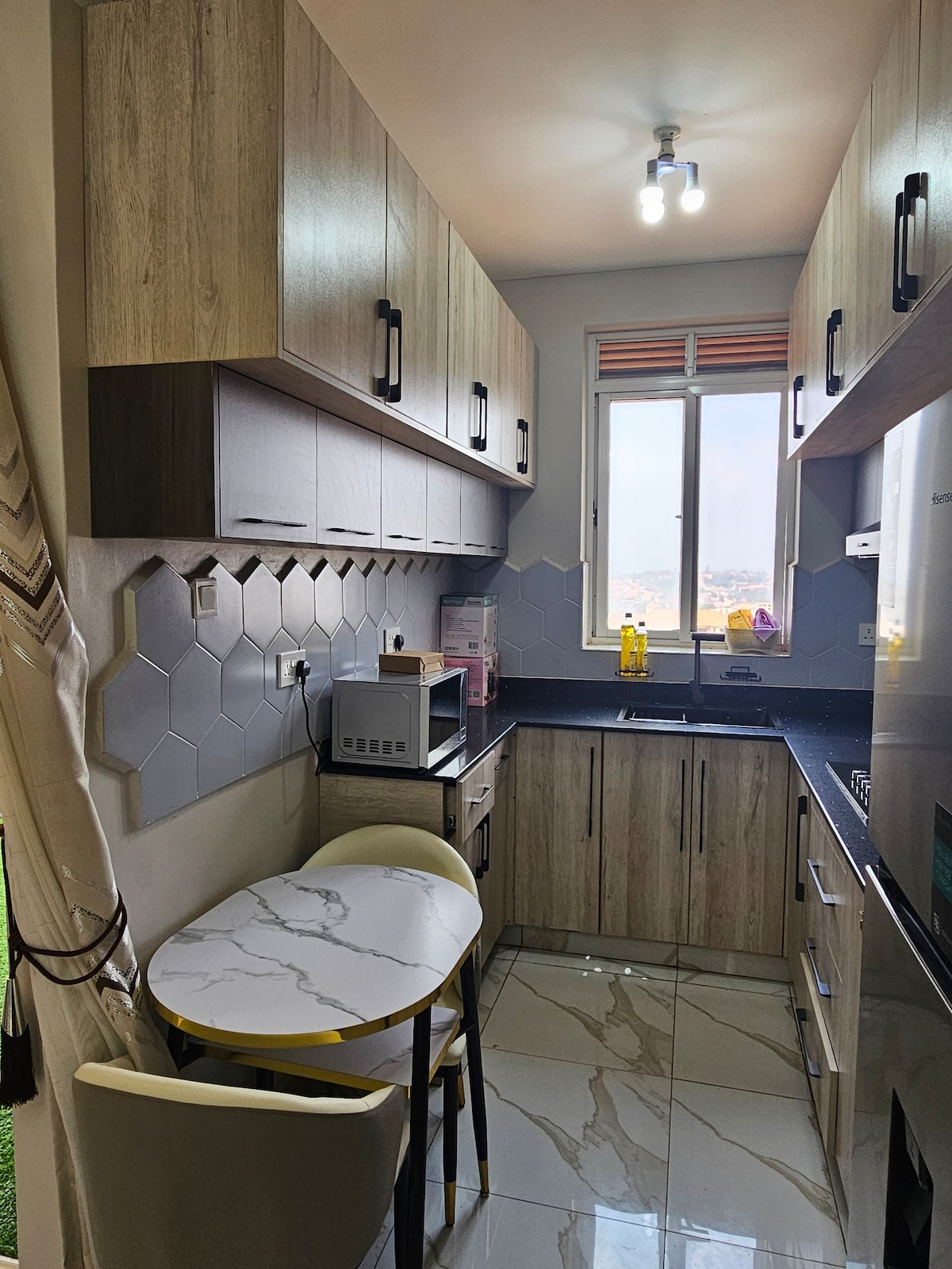 Atskleiskite mūsų centre esantį vieno miegamojo butą Bukote. Užtikrinkite, kad kiekviena viešnagės akimirka būtų apgaubta prabangos ir šilumos. Mėgaukitės žavingu vaizdu, kai diena baigiasi mūsų jaukiame balkone. Erdvė Bute yra vienas miegamasis su vandens šildytuvu, pilnai įrengta virtuvė, Wi-Fi, išmanioji televizija su YouTube ir Netflix, skalbimo mašina, baseinas, sporto salė ir terasa su vaizdu į saulėlydį. Netoli šiaurinio aplinkkelio, vos už 4,8 km nuo prekybos centro „Acacia“ ir už 6 km nuo Kampalos CBD