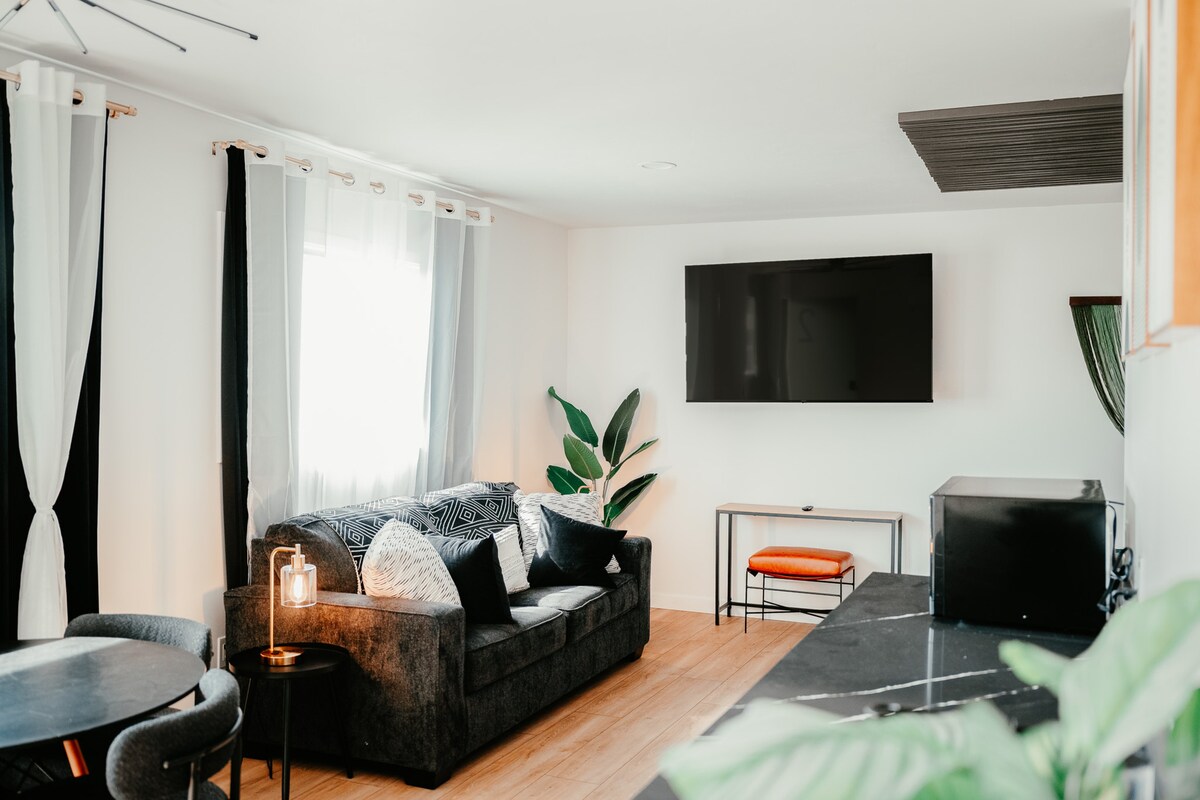 Naujai renovuotas šimtmečio vidurio modernus viešbutis! „Ground Floor Queen Studio“ pasveikina jus su viliojančiu moderniu dizainu, susidedančiu į pilnai įrengtą studijos erdvę atsipalaidavimui, darbui ir malonumui. Jūsų patogumui bus įrengtas išmanusis televizorius ir privatus vonios kambarys. O svarbiausia - patogi dvigulė lova, skirta užtikrinti gerą nakties poilsį rytojaus nuotykiams. Džiaugiamės galėdami jus priimti!