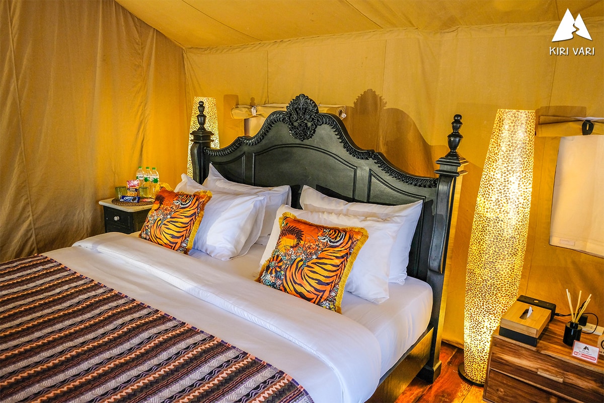 Luxury Tented Camp Lion . เต๊นท์นี้เป็น VIP Suit ที่ตั้งอยู่กลางน้ำ และตกแต่งเป็นแนว Old English Vintage Home เราเลยเลือกหยิบยกเจ้าสิงโตขึ้นมาเพื่อแทนเต๊นท์นี้ เฟอร์นิเจอร์ในห้องจะใช้ของวินเทจในหลายๆ ชิ้น ส่วนของห้องน้ำเรา เลือกใช้สีเขียววินเทจ และโคมไฟแบบโป๊ะโบราณ เรียกได้ว่าเก็บธีมกันทุกจุดเลย ความพิเศษของห้องนี้ คือ ก่อสร้างอยู่กลางบ่อน้ำ มีสะพานเชือกเดินถ่ายรูปเก๋ๆ ได้ด้วยนะ . + Free Mini Bar ในบ้านทุกหลัง + Free อาหารเช้า + Free Afternoon Tea Set + Free บริการ ตีฟองอ่างนํ้า วันละ 1 ครั้ง