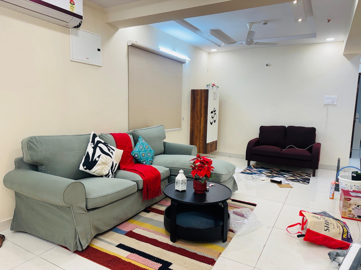 Butterfly room in 3bhk flat with attached washroom. Your family will be close to everything when you stay at this centrally-located place. Ground floor with garden around keeps the place cool. Amenities: Wi-Fi 7x7 mattress Sofa Dining table Fridge Washing machine (200/- extra per usage to cover current bill) Gym Children’s park Swimming pool Table tennis court Basketball Court Pool table AC is charged 200/- extra per day