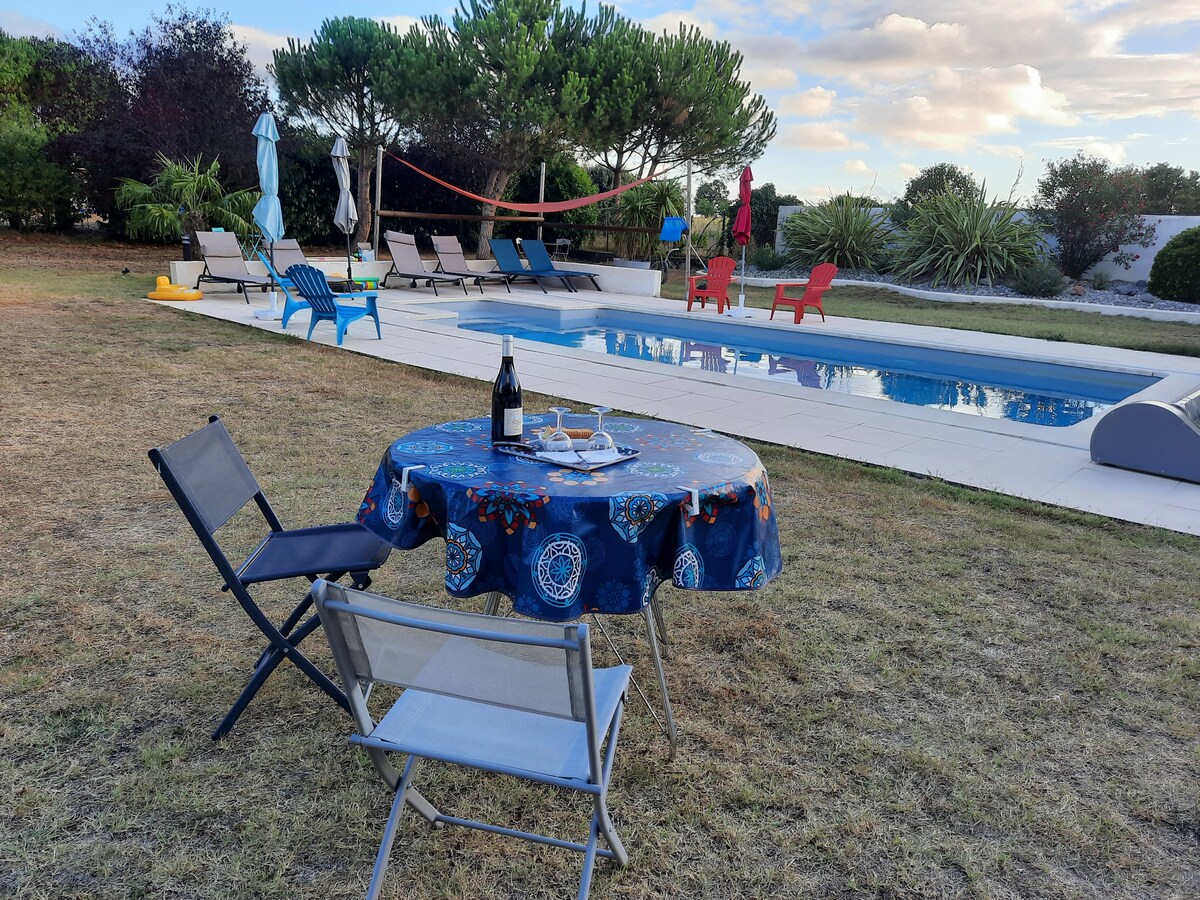 Atraskite šį žavingą Charentaise kotedžą - ramų prieglobstį pačioje kaimo širdyje, tarp Royan, Saintes ir Rochefort. Šis 55 m² svečių namas, esantis vos už 25 km nuo paplūdimių, yra buvusiame 2 hektarų vyno dvare. Mėgausitės privačia terasa ir prieiga prie bendro baseino, šildomo iki 27 °C, nuo balandžio 20 d. iki spalio 15 d. 10.00-20.00 val. Tegul šios unikalios vietos autentiškumas ir charakteris padės jums sukurti nepamirštamą viešnagę.