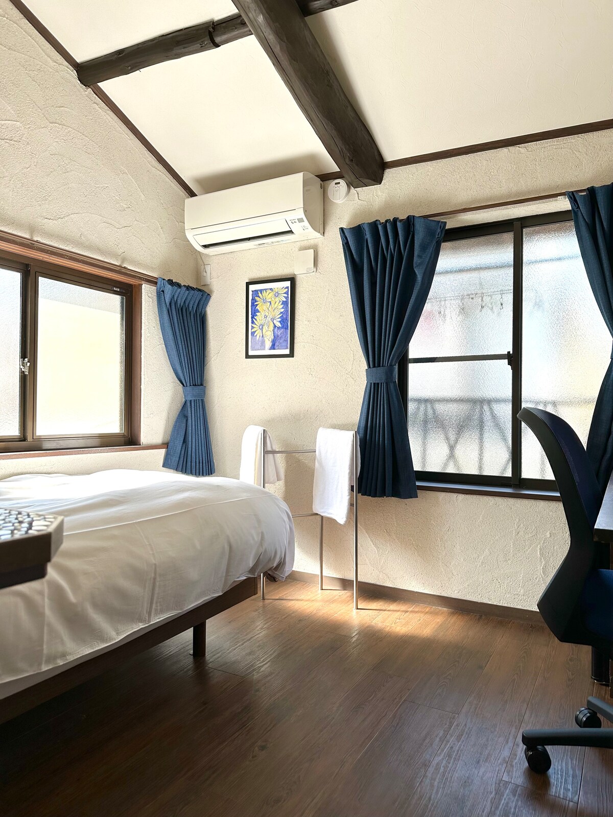 Mūsų svečių namai, esantys netoli JR Kioto stoties, yra 90 metų senumo renovuotas namas. Tradicinis japoniškas sodas skiria pagrindinius ir priestato pastatus su bendra japoniška tatamio svetaine, kurioje keliautojai gali bendrauti visame pasaulyje. Moteriškas bendrabučio kambarys yra antrame pagrindinio pastato aukšte, jame yra elegantiška kimono įkvėpta dekoracija ir erdvūs būstai iki 6 svečių. **Reikia dalytis kambariu su kitomis moterimis. *** SVEČIAI VYRAI NEGALI APSISTOTI ŠIAME KAMBARYJE.