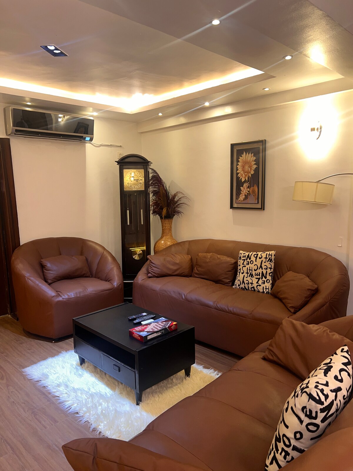 Stilingas 2 miegamųjų butas su 65 colių išmaniuoju televizoriumi, „Netflix“, nemokamu belaidžiu internetu ir nedideliu vyno baru. Mėgaukitės dviem patogiais miegamaisiais, virtuvėle su mikrobangų krosnele, šaldytuvu, dujine virykle ir 9 kg skalbimo mašina. Įsikūręs saugioje Gaduwa Estate, vos už kelių minučių kelio nuo Gaduwa Shopping Plaza, parduotuvių ir kavinių. Puikiai tinka verslo ar laisvalaikio viešnagėms, šie jaukūs namai sujungia komfortą, patogumą ir ramią aplinką atpalaiduojančiai Abudžos patirčiai. Nekantraujame jus priimti. 😊