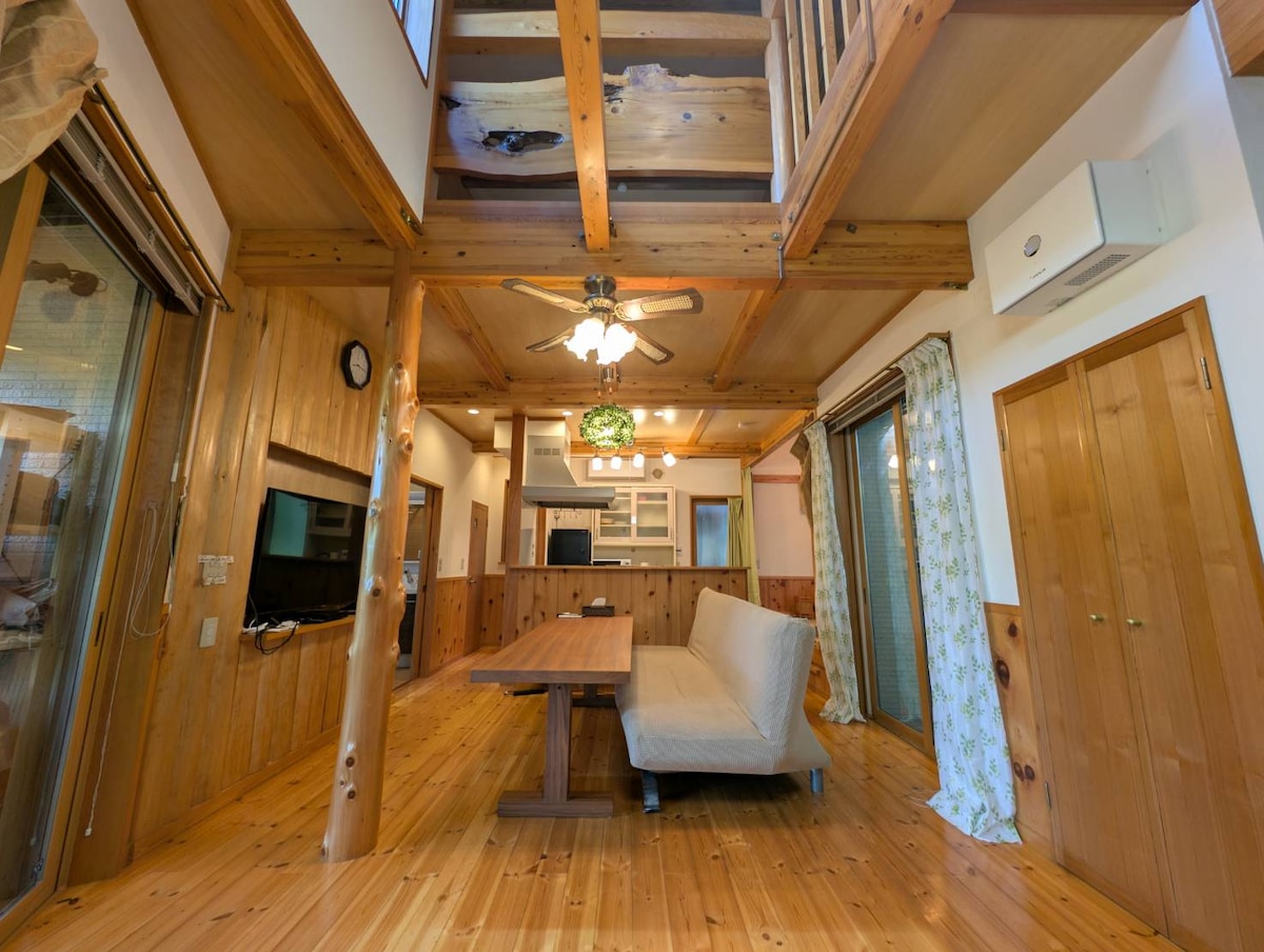 Sveiki atvykę į erdvią prabangaus amerikietiško stiliaus vilą.Trijuose miegamuosiuose, prabangioje svetainėje yra didelis stalas ir atnaujintas televizorius, aukštos lubos ir prieširdis atmosferai pagerinti.Pianino garsas yra gražus, o akustika yra aukščiausios klasės.Turėsime palaimingą laiką mėgautis muzika prie malonaus židinio.Ir dešimtys vinilų. Onsenas yra puiki vieta atsipalaiduoti, o mes taip pat turime naujausią dušo įrangą.Virtuvė puikiai tinka maisto ruošimui.Visi indai ir stalo įrankiai yra gerai įrengti su patogia indaplove.Viešnagės metu mėgaukitės atsipalaidavimu, kad galėtumėte be vargo patirti gyvenimo komfortą. Taip pat negalima praleisti didžiulio sodo.Gražiame sode, kuris yra toks pat didelis kaip pastatas, turi atvirą dengtą pavėsinę (rytinį namą), kurioje galite mėgautis kepsninėmis ir lauko renginiais.Siūloma įvairi veikla, įskaitant batutus, bouldering ir vidurkius.Taip pat galite išimti suoliuką iš rytinio namo erdvioje vejoje ir elegantiškoje kavinėje.Taip pat galite pajusti stovyklavimo vejoje atmosferą.Taip pat ir badmintonas. Mėgaukitės puikiu laiku prabangioje viloje.