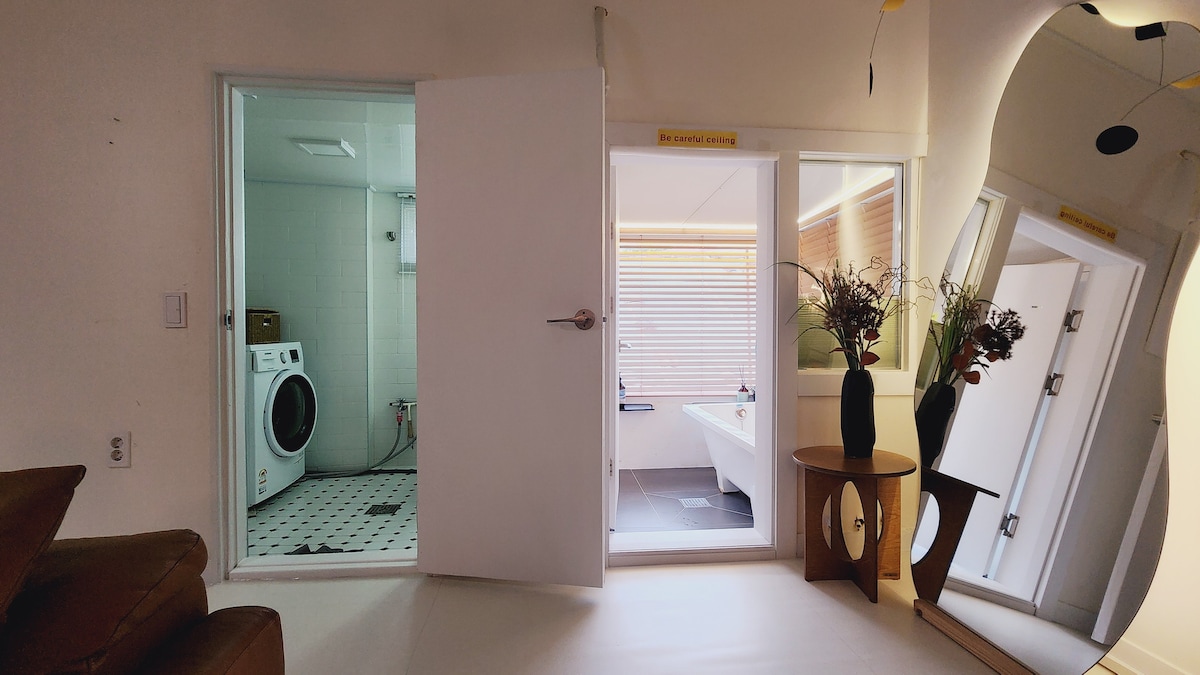 Sveiki, tai erdvė, esanti Antikvarinių baldų gatvėje, Bogwang-dong, Itaewon, Seule. Jis yra už 5 minučių pėsčiomis nuo Itaewon stoties ir už 1 minutės nuo būtiniausių prekių parduotuvės. Savo seną namą pavertėme jaukiu ir patogiu. Tai gyvenamasis rajonas, todėl jis labai tylus, todėl būste negalima kelti didelio triukšmo. Norime priminti, kad vakarėliai ar susibūrimai, kurie gali sukelti didelį triukšmą, šiai erdvei netinka. Ši erdvė sukonfigūruota taip, kad joje galėtų apsistoti nuo vieno iki dviejų žmonių. Galvojau apie tuos, kurie nori pailsėti ir mėgautis gyvenimu naujoje erdvėje arba atlikti asmeninį darbą. * Name yra nedidelė svetainė, 2 kambariai (laisvalaikiui, pvz., miegui, muzikai, filmams, knygoms, darbui, valgymui ir kt.) ir vonios kambarys. < Atsargumo priemonės dėl apgyvendinimo > - Mūsų nedidelis kambarys Itaewon rajone yra ramioje vietoje. Todėl įeiti gali tik užsisakę svečiai, kad būtų užtikrinta maloni aplinka ir saugumas. Jei to nepadarysite, bus taikomos nuobaudos, todėl atkreipkite dėmesį. (Bauda: naudojimo taisyklių pažeidimas ir iškeldinimo priemonės)