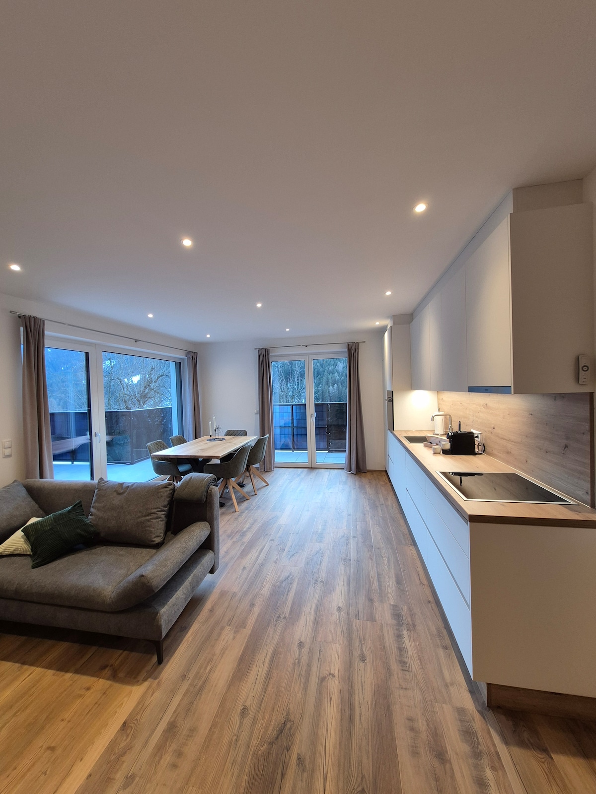 Naujai pastatytas 33m2 butas su vaizdu į ežerą ir lengvu priėjimu prie kaimo, ežero, slidinėjimo keltuvų, kalnų slidinėjimo takų ir pėsčiųjų takų. Atviras plano kambarys su karaliaus dydžio lova, TV, WIFI, sofa, valgomojo stalas, pilna virtuvė su orkaite, kaitlentė, indaplovė ir kavos aparatas, erdvus vonios kambarys su dušu ir terasa su lauko baldais.