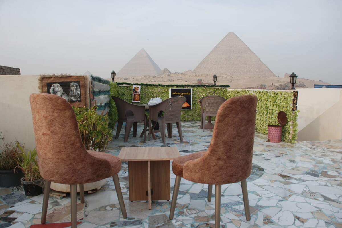 Apsistokite „The Pharaonic House“, esančiame priešais naujuosius Gizos piramidžių vartus, gyvybingame piramidžių sodo (Hadayek El Ahram) rajone. Svečių namuose yra unikalūs rankomis tapyti senovės Egipto meno kūriniai, o iš balkono ir dviejų kambarių atsiveria gražūs piramidžių vaizdai. Mėgaukitės rytine kava ar maistu stebėdami saulėtekį ir saulėlydį virš piramidžių. Puiki viešnagė keliautojams, ieškantiems komforto, kultūros ir nepamirštamo vaizdo.