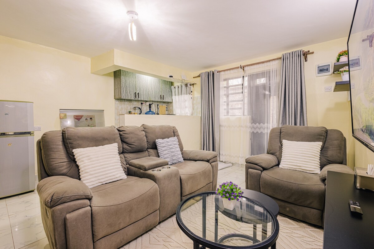 Sveiki atvykę į „Deliza Haven“ – stilingą 1 miegamojo būstą Kiambu kelyje! 🌿✨ Atsipalaiduokite ant stogo esančiame baseine, mėgaukitės filmų vakarais 43 colių išmaniajame televizoriuje su „Netflix“ ir likite prisijungę prie greito 30 Mbps „Wi-Fi“ – puikiai tinka tiek darbui, tiek laisvalaikiui. Pilnai įrengta virtuvė, jauki gyvenamoji erdvė ir rami atmosfera – tai ideali vieta verslo keliautojams, poroms ir ilgalaikiams svečiams, ieškantiems komforto ir patogumo vos už kelių minučių kelio nuo Nairobio. 🌟 Mėgaukitės 10 % nuolaida savaitinėms viešnagėms ir 35 % nuolaida mėnesinėms viešnagėms.