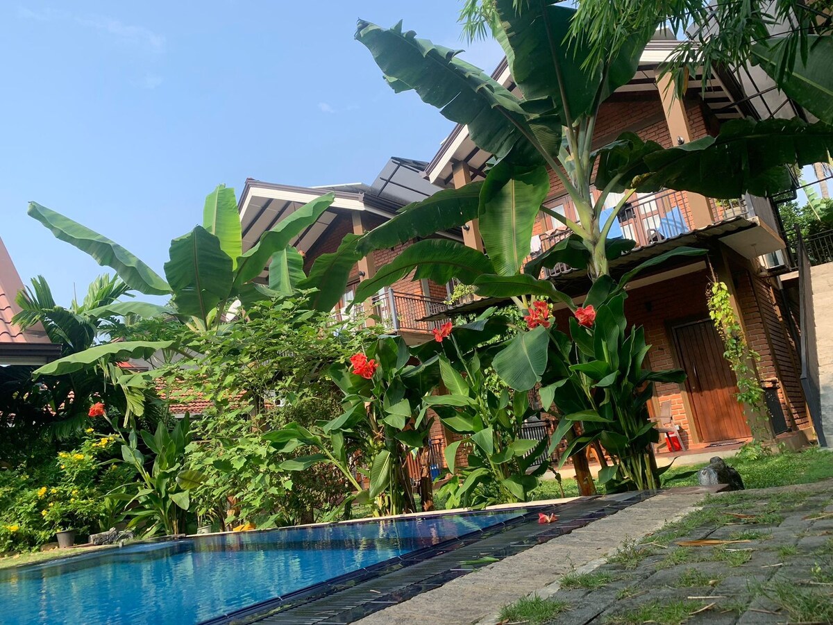 2 aukštų namas su gražiu sodu. 7 miegamieji. Visuose miegamuosiuose yra atskiri vonios kambariai + karštas vanduo. 2 aukštas gali būti naudojamas kaip 2 atskiri apartamentai (2BR ir 3BR). Virtuvė su visa įranga yra abiejuose aukštuose. 15 km iki Kolombo miesto (Fort geležinkelio stoties). 30 km iki oro uosto. Autobusai į Kolombą važiuoja kas 5 minutes. Prekybos centrai, restoranai už 500 m Labai rami ir saugi vieta Ilgalaikė nuoma ok ***Perskaitykite visą informaciją, ypač namų taisykles.