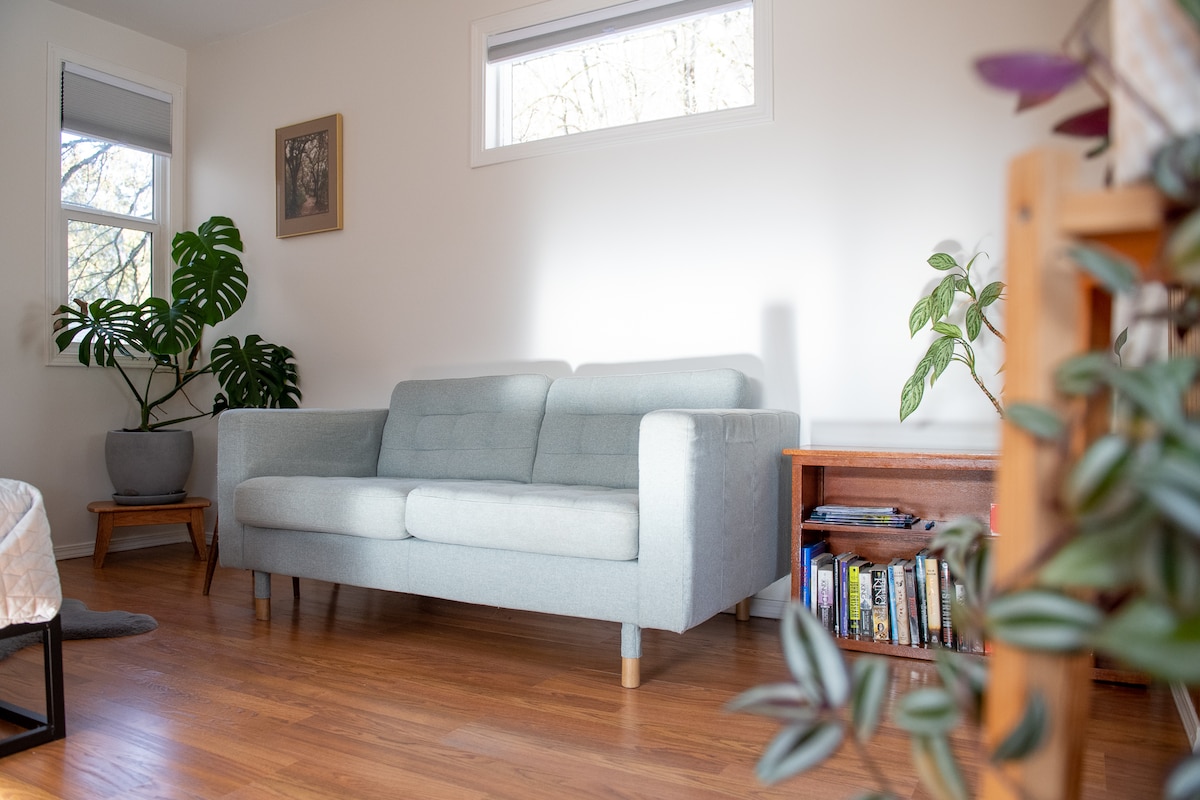 - privatus miegamasis, vonios kambarys, svetainė, įėjimas ir denis - svetainėje yra nedidelis šaldytuvas, skrudintuvas, mikrobangų krosnelė, mikrobangų krosnelė, espreso aparatas, espreso aparatas, espreso kavos aparatas, virdulys, virdulys, - tiekiami pusryčių reikmenys (kava, arbata, grūdai) - Endy dvigulė lova + sofa-lova ir sulankstoma lovelė. Antklodės yra Kanados kompanijų patalynė arba ekologiška lovelė. - stovėjimo aikštelė, stovėjimo aikštelė už gatvės ribų - Wi-Fi - elektrinis židinys - rūkymas privačiame lauko denyje; - 10 minučių pėsčiomis iki miesto centro, Lakeside parko ir maisto prekių.