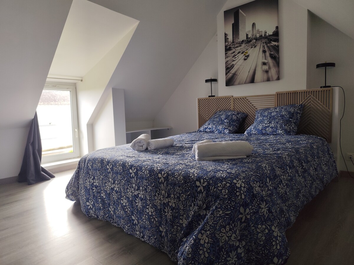 ⚠️ Draudžiama rezervuoti kito asmens vardu, rezervacijos yra vardinės. Mėgaukitės viešnage šiame lofto tipo studijoje, esančioje viršutiniame aukšte, iš kurios atsiveria vaizdas į Nanto kanalą Breste. Šiame būste yra privati garinė pirtis duše, dvivietė SPA vonia, pilnai įrengta virtuvė (orkaitė, viryklė, mikrobangų krosnelė, kavos aparatas) ir prijungtas televizorius su pailguoju garsiakalbiu. Jo lofto dvasia su gražiu lubų aukščiu sukuria šiltą ir modernią atmosferą.