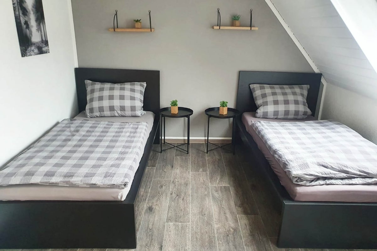 Naujai renovuotas namas pirmame aukšte ir mansardoje su atskiru sodu. Sveiki atvykę į šį 110 m² 3 kambarių butą, kuriame rasite viską, kas reikalinga puikiai viešnagei Wolnzach: → KINGSIZE lova ir sofa-lova → Išmanioji televizija su „NETFLIX“ → TASSIMO kavos aparato → virtuvėlė → Skalbimo mašinos → terasa su privačiu sodu → Automobilio stovėjimo aikštelė priešais duris. ☆„Dominik labai padeda ir labai greitai atsako. Bet kuriuo metu dar kartą.“