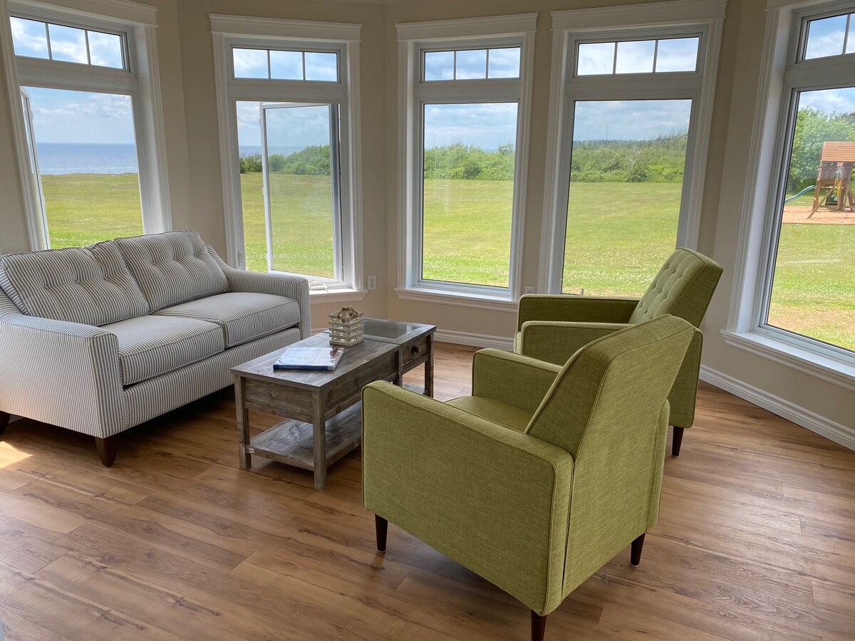 Sveiki atvykę į „Cliffside Paradise“ – jūsų ramų prieglobstį prie Chaleur įlankos! Šiuose žavinguose namuose dera jaukus kotedžo komfortas ir stulbinantys panoraminiai vaizdai – tai puiki vieta atsipalaiduoti, pailsėti ir atgauti ryšį su aplinka. Išeikite į lauką ir mėgaukitės kvapą gniaužiančiu kraštovaizdžiu ištisus metus iš savo privačios sūkurinės vonios ar autentiškos kedro statinės saunos. Nesvarbu, ar mėgaujatės rytine kava su vaizdu, ar atsipalaiduojate po nuotykių kupinos dienos, kiekviena akimirka atrodo ypatinga. Puikiai tinka romantiškai išvykai ar šeimos poilsiui.