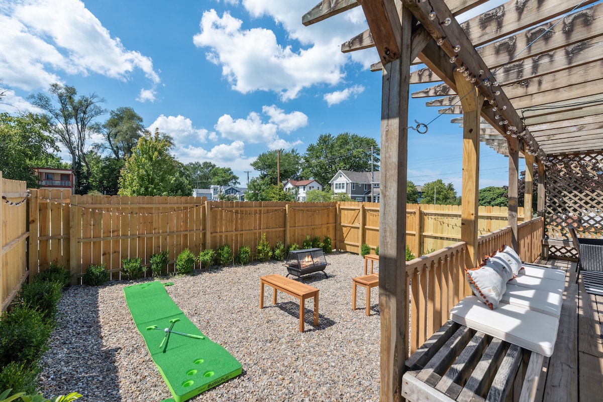 Pabėkite į Naująjį Bafalą ir atsipalaiduokite mūsų neseniai renovuotuose namuose! 10 min. pėsčiomis nuvyksite į fantastiškas parduotuves, valgius ir gėrimus. Mūsų profesionalaus dizaino 4 lovų, 2,5 vonios namuose patogiai miega 10 žmonių. Dideliame kieme, esančiame ramiame rajone, yra kepsninė, laužavietė ir lauko valgomojo zona. Mažiau nei 1 mylia nuo paplūdimio ir Amtrak stoties, 5 min. iki Union prieplaukos, 15 min. iki Mičigano miesto, 40 min. iki Saut Bendo, 75 min. iki Čikagos. Apsistokite ir mėgaukitės „Harbor Country“ stilingai!