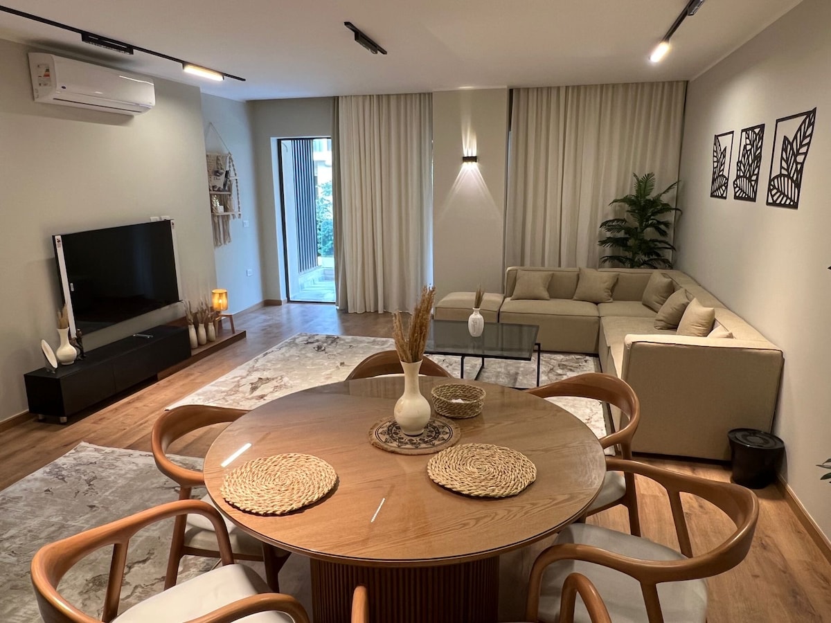 Mėgaukitės prabanga šiame 3 miegamųjų bute visą parą saugiame komplekse Naujajame Kaire - už 25 min. kelio nuo oro uosto. Yra pagrindinis miegamasis, išmanieji televizoriai, didelės spartos Wi-Fi ir aukščiausios kokybės baldai su prabangiu valgomojo rinkiniu. Mėgaukitės bendrais baseinais, žaliosiomis erdvėmis ir gražiais vaizdais. Netoli geriausių prekybos centrų, kino teatrų, restoranų ir visko, ko jums reikia. Puikiai tinka šeimoms ar verslo viešnagėms - užsisakykite viešnagę dabar