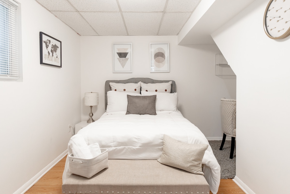 Jaukus, gerai apšviestas rūsio butas su privačiu įėjimu ir laipteliais. Rūsyje yra pilnai įrengtas vienas didelis miegamasis su televizoriaus kampu, atskira virtuvėlė su šaldytuvu ir virtuvės reikmenimis, vonios kambarys ir skalbykla. Visas rūsys rezervuotas svečiams ir yra tylus bei ramus. Svečiai taip pat gali naudotis lauko terasa. Ši erdvė buvo apgalvotai įrengta, kad būtų „namai toli nuo namų“, ir puikiai tinka trumpalaikėms ar ilgalaikėms viešnagėms. Netoli viešojo transporto.