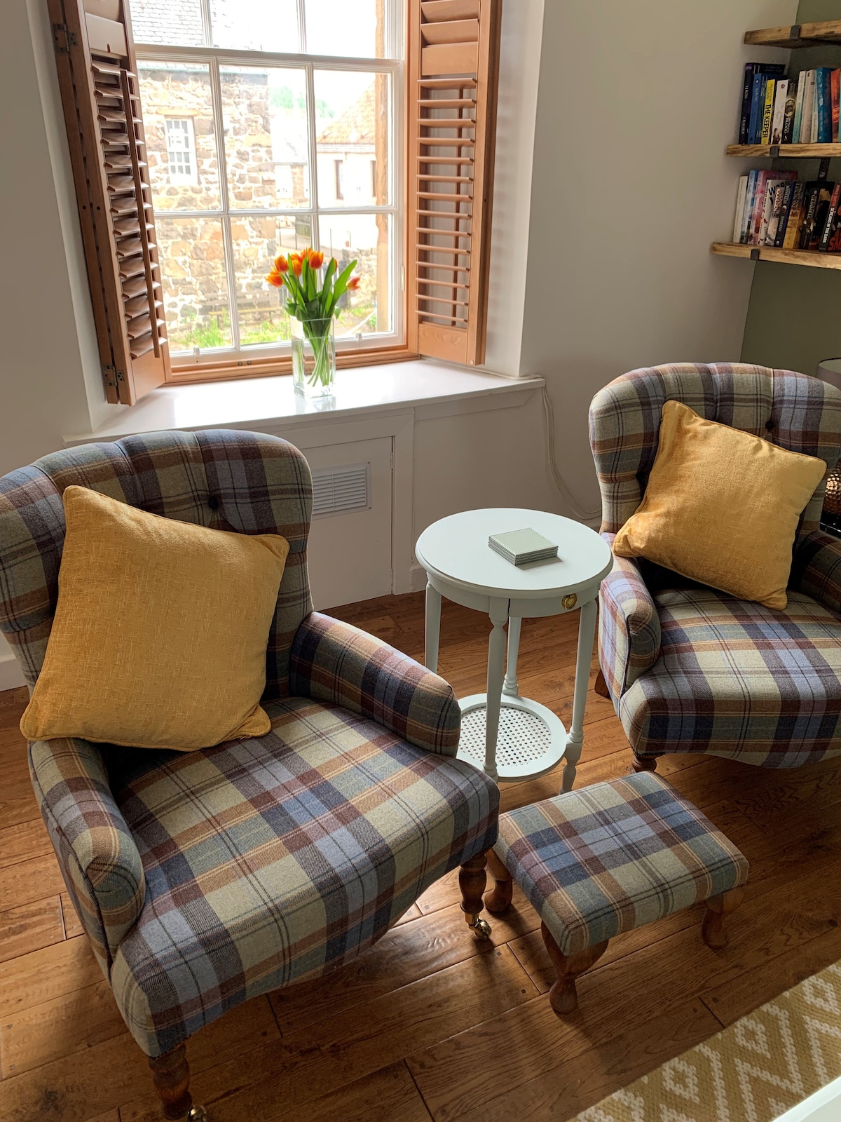 Eastmost Cottage is in a wonderful position on the edge of the historic village of Falkland. It's a short walk from the fine Renaissance Falkland Palace, the heart of the medieval village with its independent shops, cafes restaurants and pub. There is great walking in the Lomond hills, accessible on foot. The wonderful Covenanter has great food all day; the Hayloft and Pillars of Hercules are lovely cafes. The Stag is a lovely bistro (our fav). Fine dining at the Boar's Head in Auchtermuchty.