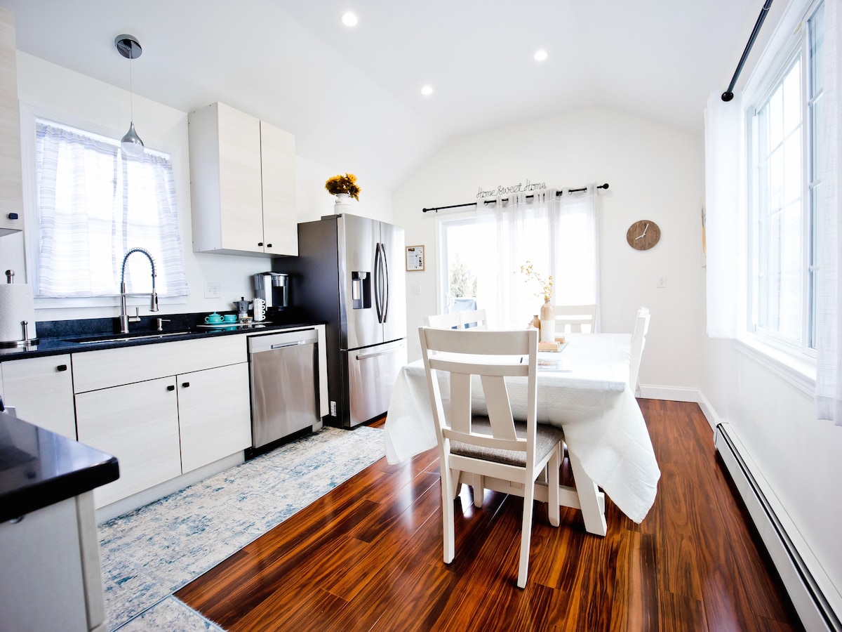 Mėgaukitės mūsų NAUJAI renovuotais dviejų lygių erdviais „Newport Beach Retreat“ namais, esančiais labai pageidaujamoje vietovėje. 5 min. pėsčiomis iki garsaus Niuporto pirmojo paplūdimio (Easton paplūdimio) ; už 5 min. kelio automobiliu iki Antrojo paplūdimio ir vaizdingo pasivaikščiojimo po uolą. Abu paplūdimiai puikiai tinka banglenčių sportui, saulėlydžiui ir atsipalaidavimui. Galite nueiti į kavines, restoranus/barus ir vandens sporto nuomos parduotuvę. Šioje vietovėje yra prabangūs Niuporto dvarai, miesto centras, pasivaikščiojimas po uostą, vynuogynai, apsipirkimas, valgymas ir mėgstamiausios Niuporto VESTUVIŲ VIETOS.