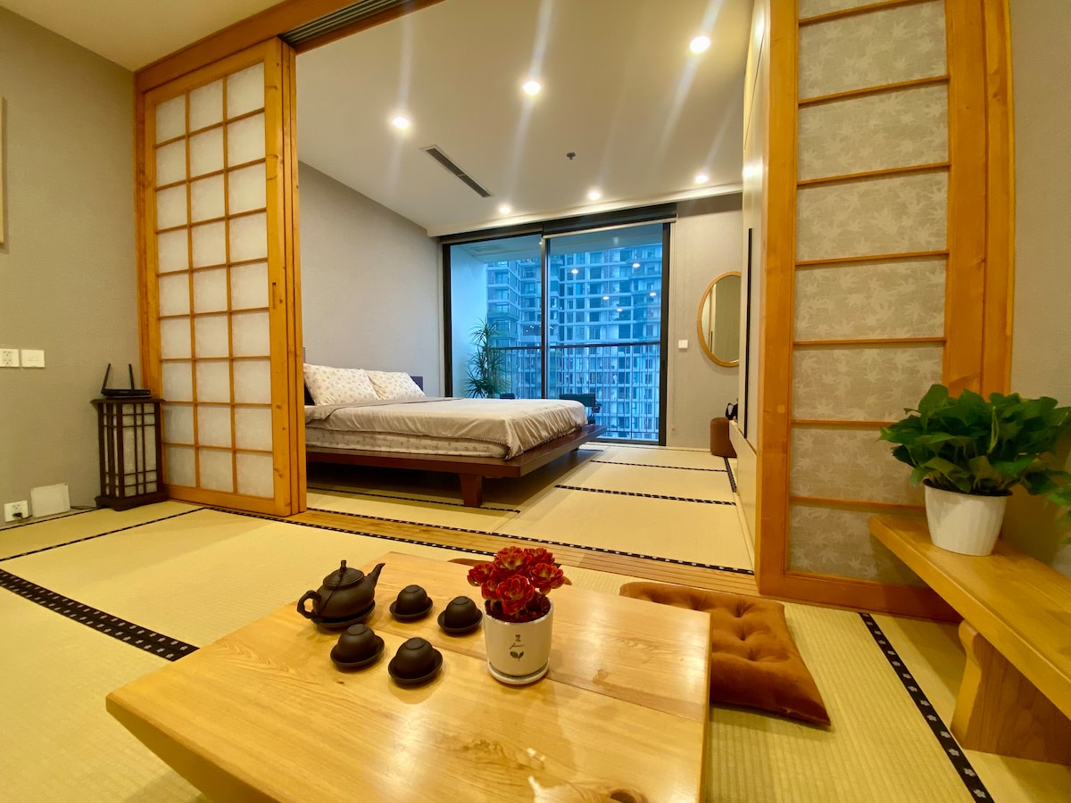Atsipalaiduokite šiame jaukiame, bet prabangiame Ecopark bute su vonia, privačia sauna ir nemokamu mini baru. Virtuvėje yra oro gruzdintuvas, mikrobangų krosnelė, visa virtuvė, įskaitant virtuvės reikmenis ir filtruotą vandens sistemą, taip pat skalbyklė ir džiovyklė. Nemokama sporto salė, baseinas ir onsenas laukia vešlioje žalioje aplinkoje. Vos 20 min. iki senojo Hanojaus kvartalo su valandiniu autobusu. Mėnesio svečiai naudojasi papildomais nemokamais privalumais už dar didesnę vertę.
