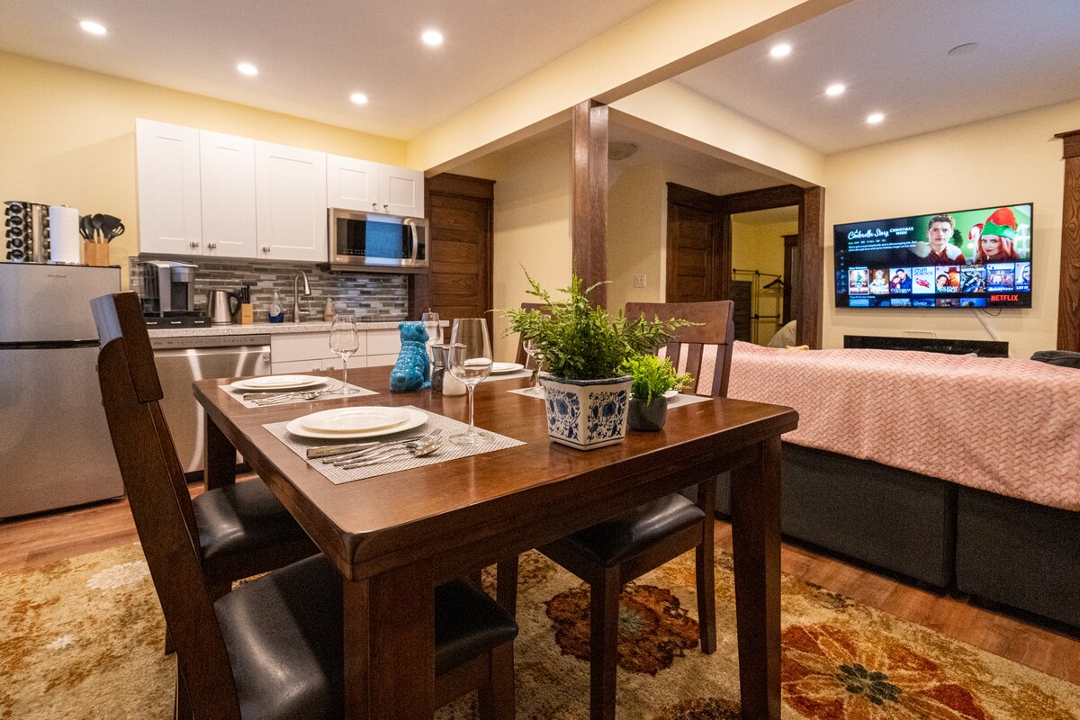 Apsistokite ramiuose antrame aukšte esančiuose apartamentuose, kurie sukurti romantikai ir atsipalaidavimui. Atsipalaiduokite prie jaukaus elektrinio židinio, įsitaisykite minkštoje dvigulėje lovoje ir atsipalaiduokite naudodamiesi sparčiu belaidžiu internetu, skalbimo mašina, nemokama automobilių stovėjimo aikštele ir mėgstamomis transliuojamomis laidomis – visa tai jūsų, visiškai privatu. Įsikūrę žavingame Niagaros nakvynės su pusryčiais rajone, jūs esate vos už vaizdingo pasivaikščiojimo nuo krioklių, Kliftono kalno, restoranų ir WEGO autobuso – pakankamai arti, kad pajustumėte jaudulį, bet pakankamai atokiai, kad galėtumėte mėgautis ramybe ir intymumu.