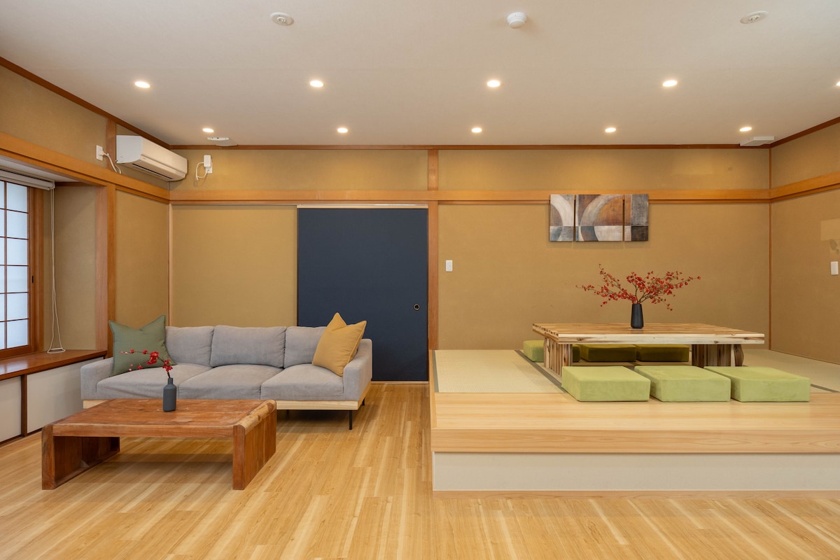 Tai privatus kambarys, kuriame yra tik vienas namas (mokestis pridedamas prie žmonių skaičiaus). Svetainėje ir miegamajame gali apsistoti iki 8 asmenų 16 tatamių kilimėlių (8 tatamių kilimėlių), svetainėje ir 6-tatami kilimėlio miegamajame. Jame yra vonia, tualetas, skalbimo mašina, virtuvė ir šaldytuvas.Komplekte yra veido rankšluostis ir vonios rankšluostis. Yra nemokamas belaidis internetas. Kambarys yra viršuje, o iš kaimynų sunku išgirsti, todėl jis puikiai tinka šeimoms su mažais vaikais arba norintiems ramiai praleisti laiką. Aplink namą yra nedidelis eismas ir mažai pėsčiųjų.