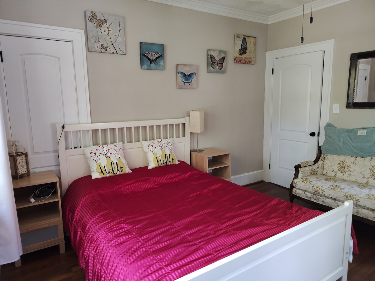 Vidutinis įvertinimas: 4,95 iš 5, atsiliepimų: 297Erdvus miegamasis su privačia vonia ir įėjimu