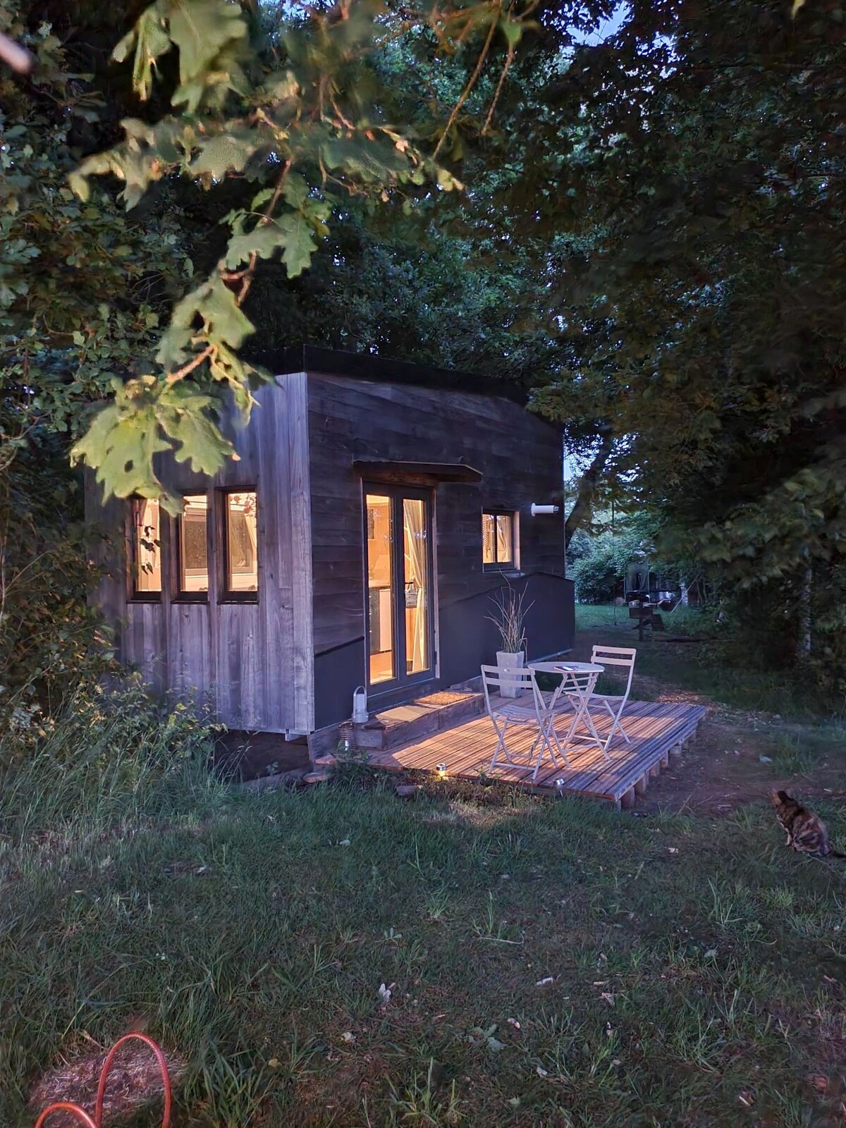 Jolie tiny house cosy et chaleureuse avec son ambiance chalet en hiver décoré avec ses jolis petits coussins et son plaid tout doux. Ses atouts: Départ dimanche jusqu’à 15h -Matelas à mémoire de forme dernière génération. - Immergée dans l'enclos des animaux de la ferme -jardin clos de 500m2 mobilier-barbecue-ping-pong -Terasse de 18 M2 surplombant la nature -Accés au chemin pédestre au pied du logement -Accès au bassin naturel ou vous pouvez: -Vous baigner(Chaussures de bains obligatoires