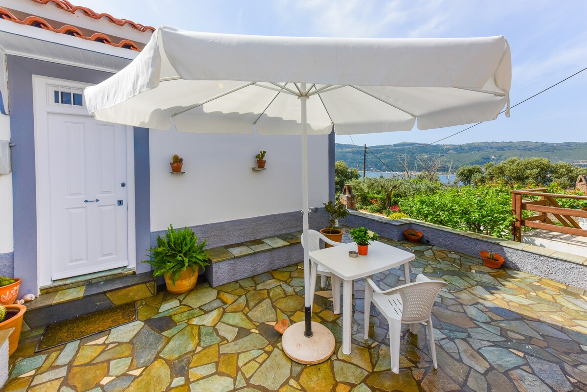 Įsikūręs netoli Samos miesto, 3 km nuo miesto centro, apie 3 minučių kelio automobiliu. Mažas, privatus namas su automobilių stovėjimo aikštele. Netoliese gyvena savininkai, kad gautų pagalbos ar klausimų apie salą. Svečiai gali naudotis sodu. Puikus Samos miesto įlankos veiw. Rami vieta, netoli daugelio paplūdimių. Laikomės visų naujų Covid-19 viruso valymo taisyklių.