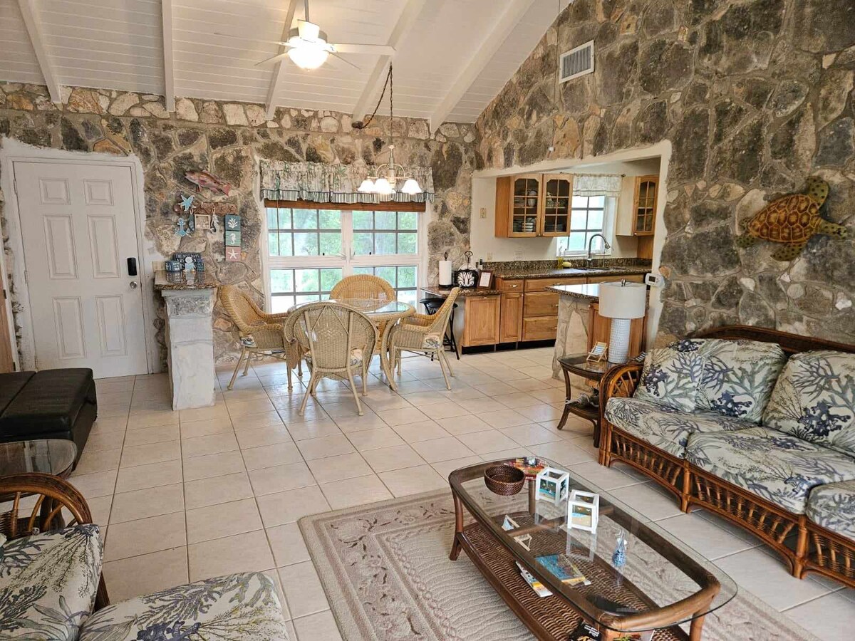 Leiskitės į ramybę šioje unikalioje ir ramioje išvykoje. Privatus vienaaukštis namas. Saulės energija varomas. Vienaaukštis namas taip pat turi palydovinį didelės spartos internetą Bahamų stiliaus vienaaukščiame vasarnamyje su sodais. Įspūdingi Karibų jūros vaizdai ir saulėlydžiai. Plaukimas ir snorkeliavimas yra trumpas pėsčiomis nuo kalvos iki jūros. Atlanto vandenynas ir rožinio smėlio paplūdimiai yra už 10 minučių pėsčiomis. Mes įsikūrę Eleuteros centre, o Gubernatorių uosto gyvenamoji vieta yra už 10 minučių kelio automobiliu.