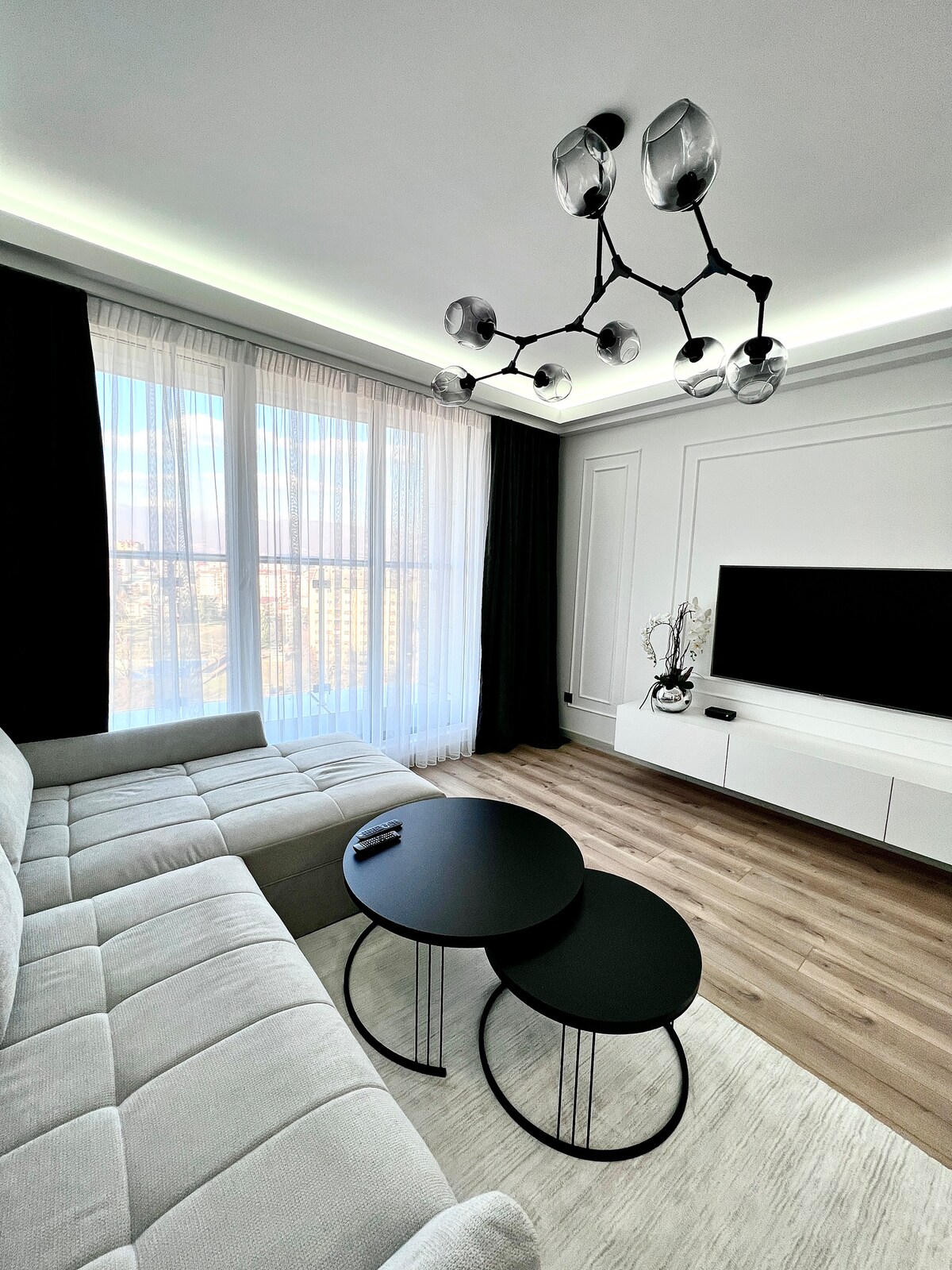 Enjoy your stay in one of Skopje’s most modern and tallest residential complexes. This stylish apartment is located on the 19th floor, offering breathtaking panoramic views of the city. Just 4 km from the city center, it provides the perfect balance of comfort and convenience. During your stay, you’ll enjoy a range of premium amenities, including: Free access to the on-site SPA center (indoor swimming pool & fitness area) Free dedicated parking spot Located 22 km from Skopje Airport.