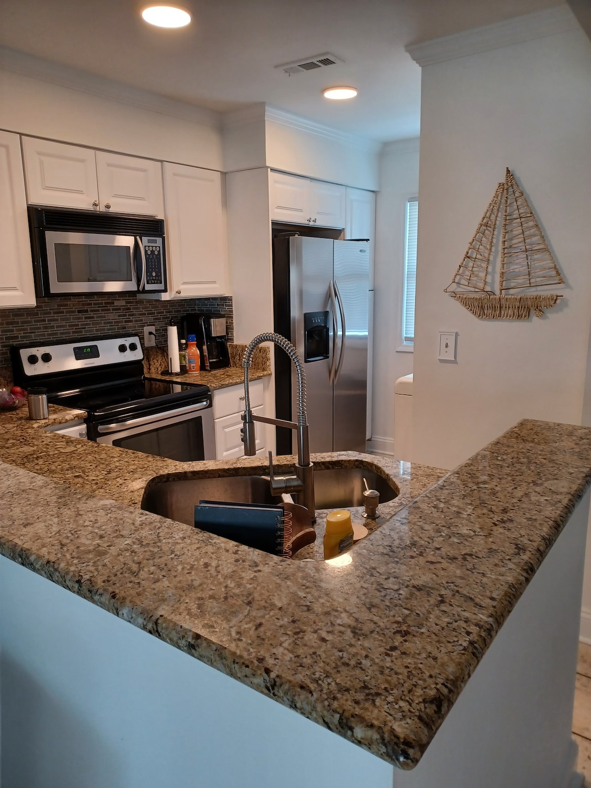 Sveiki ir sveiki atvykę iš šeimininkų Jeannie ir Alan Williams Džiaugiamės galėdami priimti jus, kad turite mūsų svečių. Jau 20 metų priklausau mažajam„piliui“ ir vadinu jį namais! Koks gražus vaizdas į šį kondominiumą yra visiškai žavingas ir jaučiasi kaip namuose! Viskas, ko reikia, yra pilyje! Ant denio pasimėgaukite rytine kava ir stebėkite delfinus! Šis butas yra vos už kelių kvartalų(8 kvartalų) nuo pagrindinės gatvės NMB.( parduotuvės ir restoranai Privati automobilių stovėjimo aikštelė.
