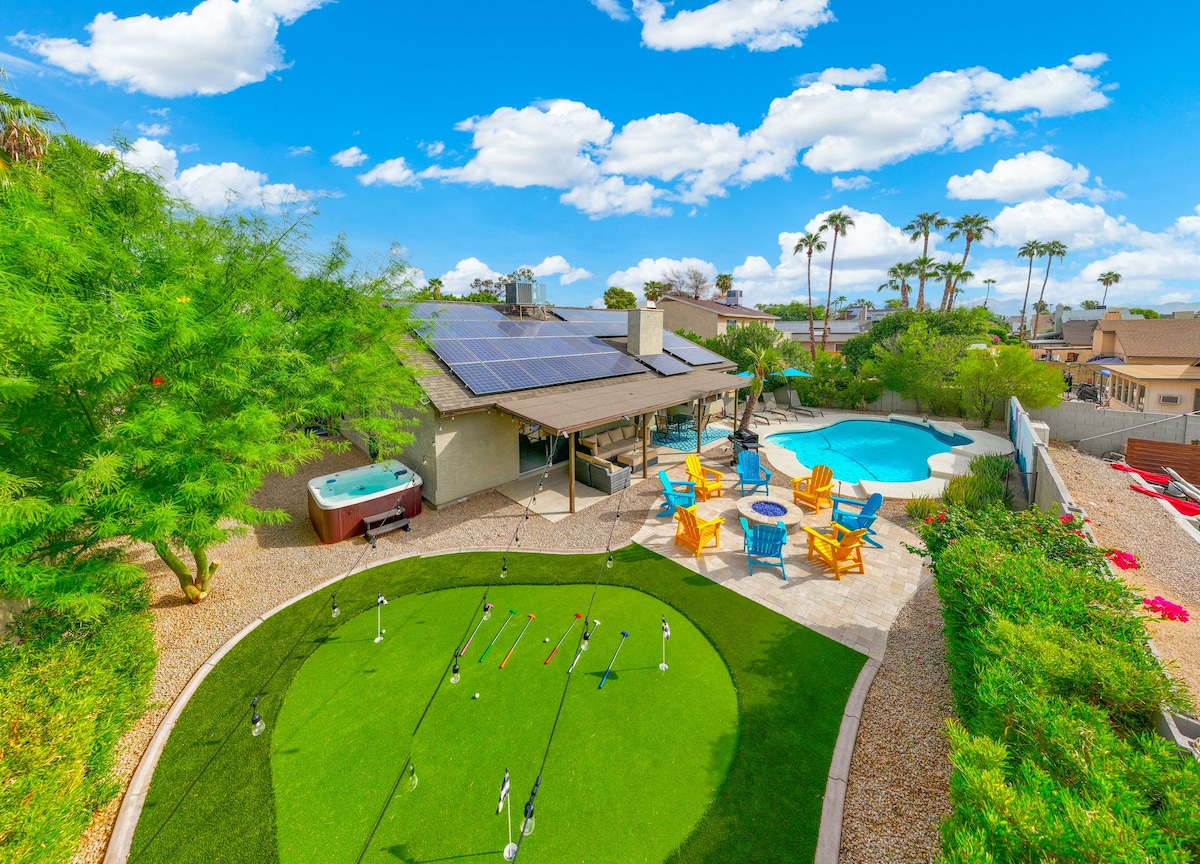 Elegantiškai suprojektuota ir modernizuota, kad atitiktų išrankiausio keliautojo standartus. Vienas iš šių namų akcentų yra didelė ir privati kiemo zona. Erdvė puikiai tinka mėgautis Arizonos saulės spinduliais šildomame* baseine, žaisti kelis gaudymo ar kukurūzų skylės žaidimus dideliame žolės lopinėlėje, susiburti aplink laužavietę, kad po valandų išgertų taurę vyno ir puikiai pasikalbėtų, arba mėgautis puodeliu kavos po dengta terasa ir pakilti su ryto saule.