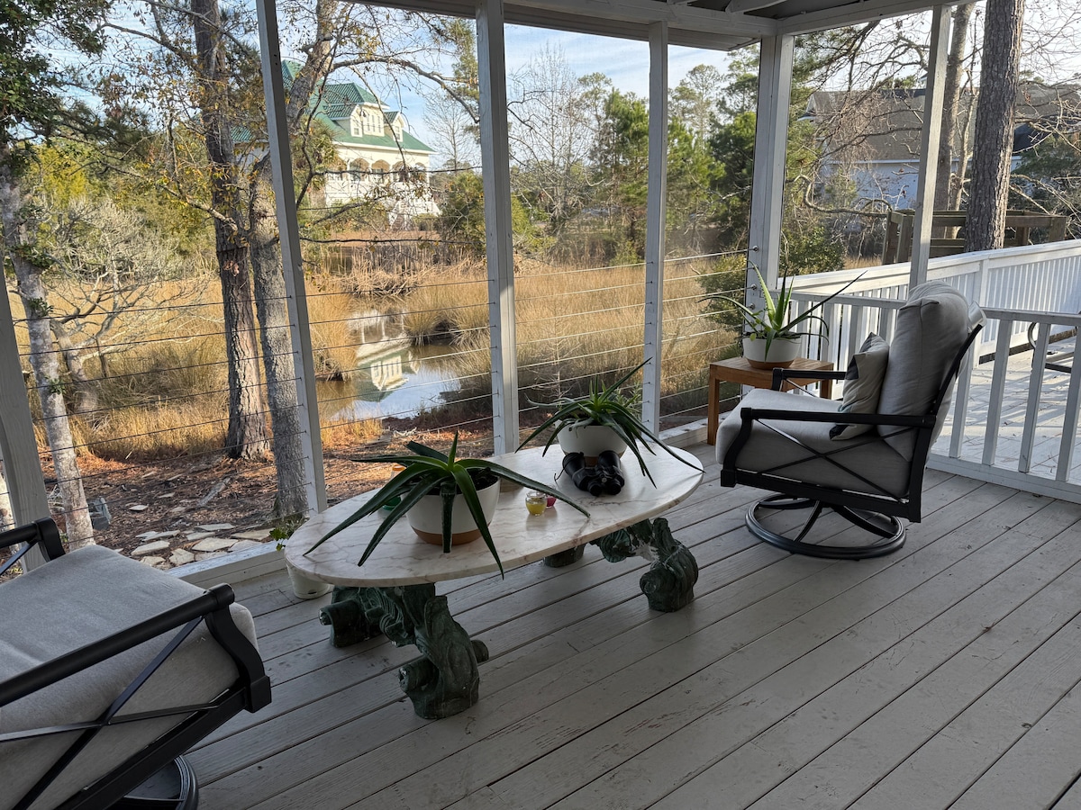 Krantinė su prieplauka, prieplauka. Namai, esantys tarp Intracoastal Waterway ir Run of Little Creek potvynio upelio, priešais Eagle Point golfo klubą. Puiki vieta baidarėms, baidarėms, golfui, važiavimui dviračiu, žvejybai, krabų gaudymui, vaizdingiems pasivaikščiojimams. Įsikūręs ant nuošalaus druskos pelkės potvynio upelio, vedančio į netoliese esantį Intracoastal vandens kelią ir Atlanto vandenyną, mėgaujasi lauko privatumu, grožiu ir gamta, tačiau su netoliese esančiais paplūdimiais, restoranais, parduotuvėmis, golfu ir valtimis. Vakarėliai ir renginiai neleidžiami.