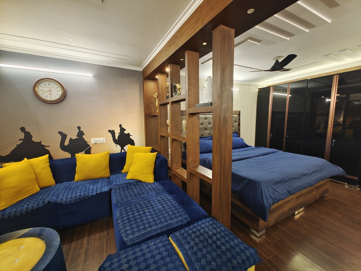 Boho stiliaus prabangus 1 kambario butas su šilta, jaukia atmosfera, privačiu balkonu su paminkštinta sūpynė ir pasakiškomis lemputėmis. ✨ Mėgaukitės 55 colių išmaniuoju televizoriumi su garso juosta ir žemųjų dažnių garsiakalbiu, kad jaustumėtės kaip kino teatre. Viešnagės metu galėsite naudotis oro kondicionieriumi, oro valytuvu, indukcine virykle, šaldytuvu, RO, indais ir arbata ar kava. 🙌🏻 Netoli Shalimar Bagh metro stoties, vos už 100 m nuo KFC, Domino's ir McDonald's bei netoli PVR ir Pacific Mall. 📍 Puikiai tinka pasimatymams ar gimtadieniams, dekoracijas galima užsisakyti.❤️