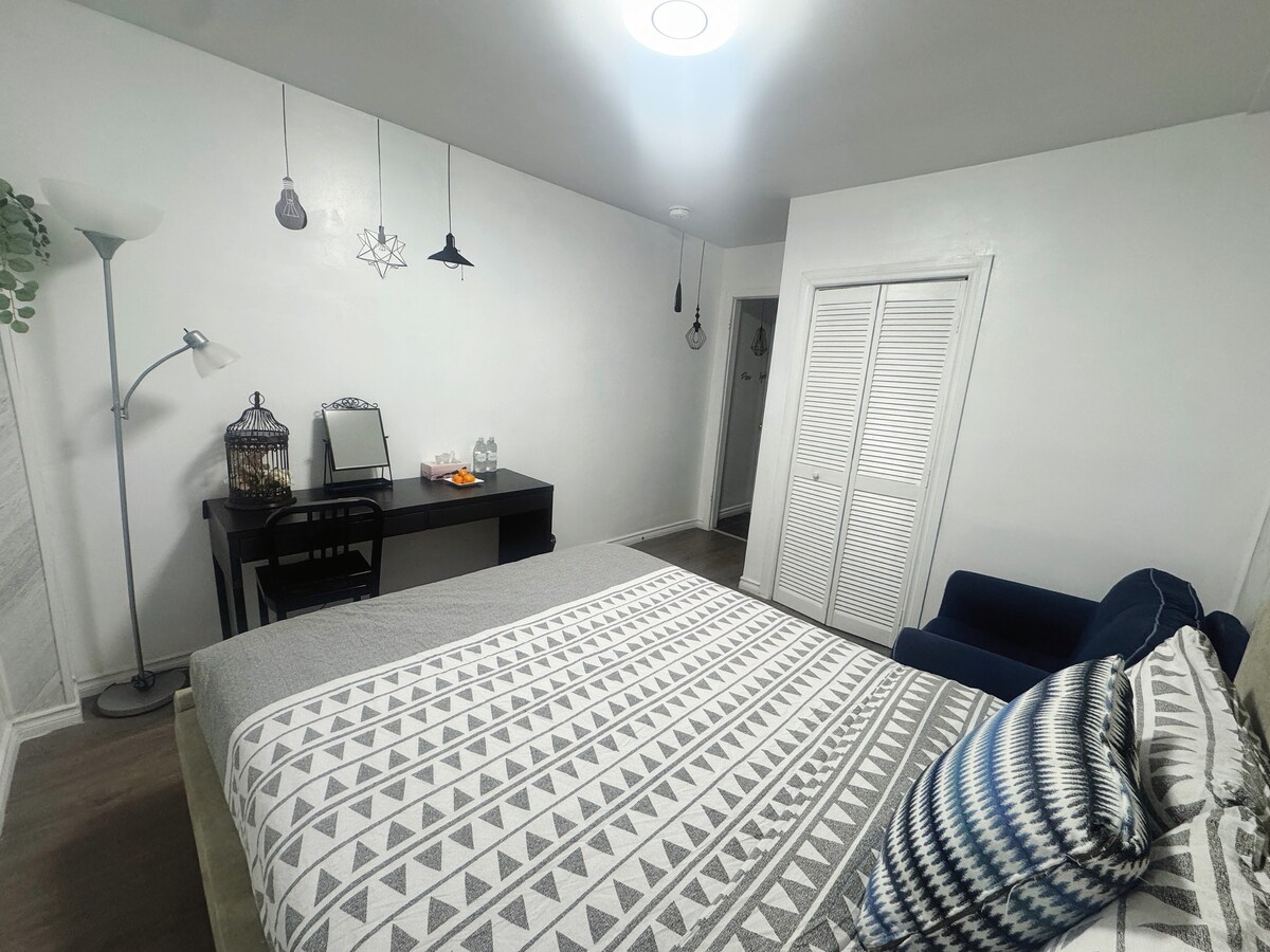 Gražus ir erdvus pagrindinis miegamasis su atskiru vonios kambariu. Patogiai įsikūręs prie Yorkdale prekybos centro, metro stoties, autobusų maršrutų, restoranų, bankų, jungiantis su visais patogumais vos už kelių minučių kelio pėsčiomis. Neseniai renovuotas namas su naujais baldais, virtuve, miegamuoju, vonios kambariu. Naujas putų čiužinys/pagalvės. Gali būti įrengta nemokama stovėjimo vieta. Nemokama kava, arbata ir didelės spartos Wi-Fi. Puikiai tinka poilsiui, alternatyvai darbui iš namų, verslui ir šeimoms.