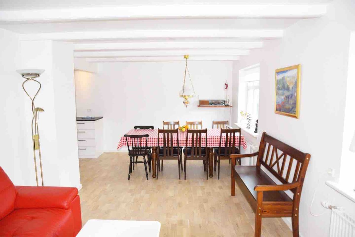 Senas namas Klaksviko širdyje buvo visiškai naujas. Vos dvi minutės pėsčiomis iki jūros. 200 m spinduliu yra tokie patogumai kaip parduotuvės, žaidimų aikštelė vaikams, futbolo aikštelė, viešasis baseinas, kinas, picerija.