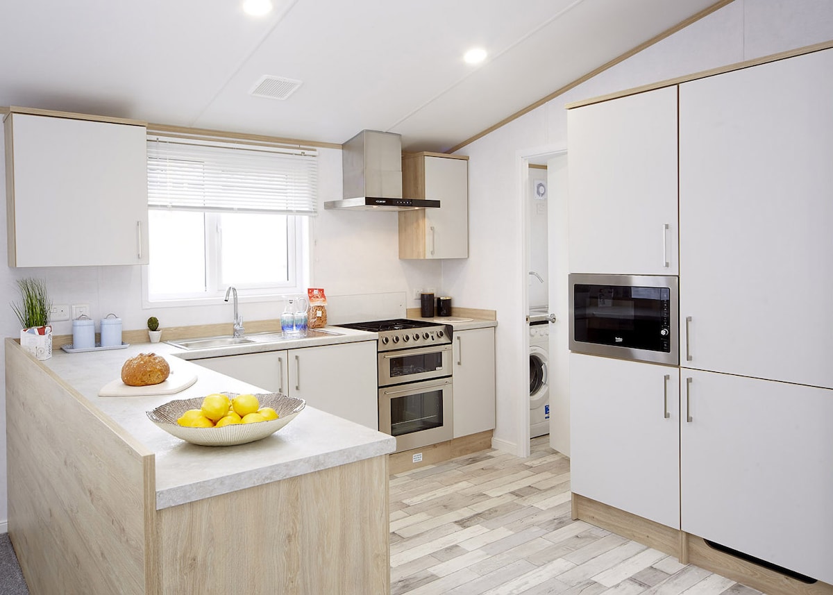 Mėgaukitės prabanga šioje aukščiausio lygio Pemberton Rivendale ložėje. Šis didelis 20 pėdų x 40 pėdų namelis (dviejų priekabinių namelių dydis) yra prie ežero ir turi didžiulę į pietus nukreiptą terasą, kuri yra didžiausia parke. Užpildykite rattan sodo baldais, o tai reiškia, kad galėsite patogiai mėgautis saulės šviesa visą dieną. Šiame namelyje yra aukštos kokybės interjeras su pilnai įrengta virtuve, įskaitant amerikietiško stiliaus šaldytuvą, pilno dydžio indaplovę ir skalbinių džiovyklę.