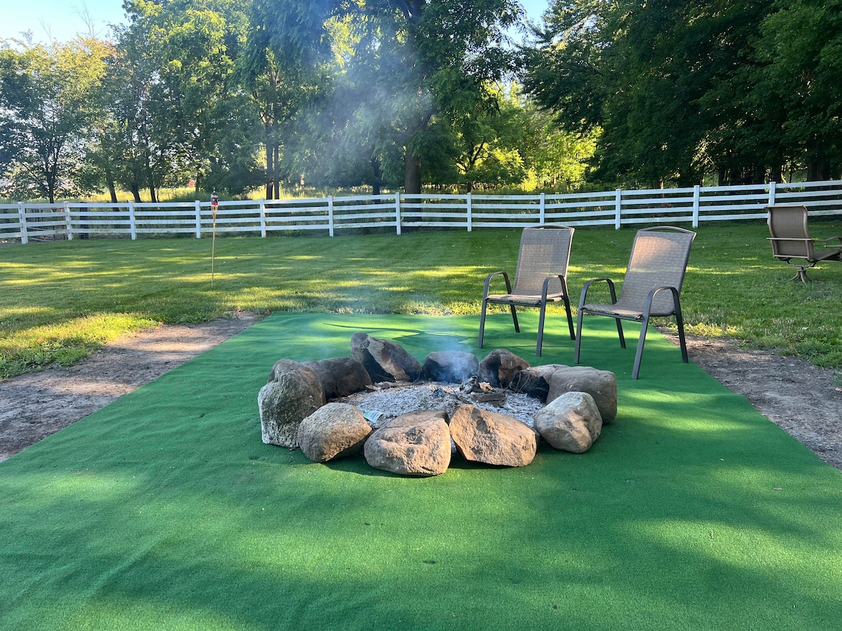 Netoli Gošeno, šis didelis automobilinis namelis yra gražiame Amišų kaimo ūkyje. Esate apsistoję šiame būste, galite jaustis vieniši ir toli nuo nieko, tačiau jūsų vietiniai šeimininkai, jauna amišų pora, gyvenanti dideliame ūkio name netoli kelio, nekantrauja jus priimti ir bus ten, jei ko nors prireiks. Shipshewana, Middlebury ir net Notre Dame nėra per toli. PASTABA: nors tai yra amišų ūkis, jie jums parūpino elektrą, karštą vandenį ir oro kondicionierių, tačiau televizoriaus nebus