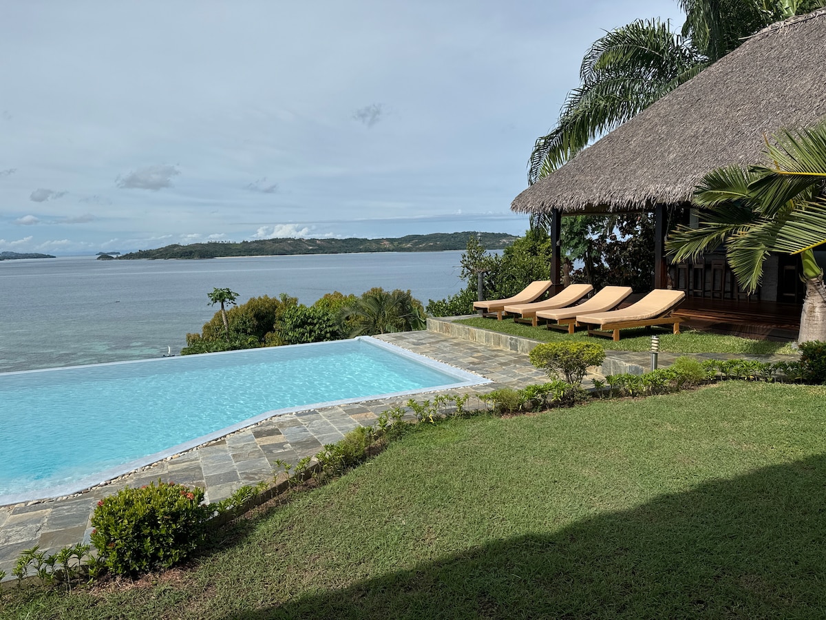 Išskirtinė vila, visiškai privatizuota ir be priešingų, su vaizdu į nuostabią Befotakos įlanką (į šiaurės vakarus nuo Nosy Be), su dideliu begalybės baseinu ir rūpestingai prižiūrimu atogrąžų sodu. Vila pastatyta iš kilmingų vietinių medžiagų ramioje vietoje, kur karaliauja gamta, už 5 min. kelio pėsčiomis nuo paplūdimio. Vila yra privataus ir saugaus domeno dalis, turinti savo personalą (tarnaitę, sodininką ir virėją, įeinantį į nuomos kainą).