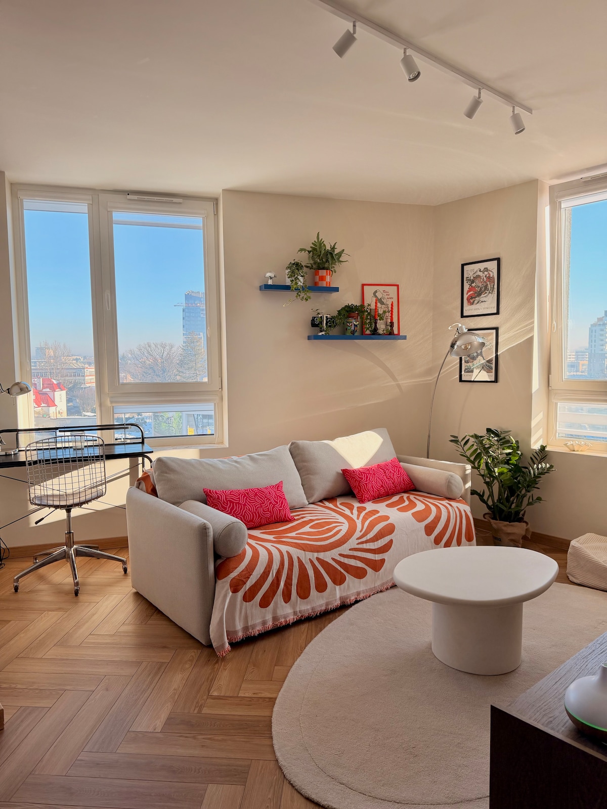 Będziesz mieć ułatwione zadanie z planowaniem wolnego czasu, bo stąd jest wszędzie blisko. Mieszkanie jest zlokalizowane na 15 piętrze z widokiem na zachód bezpośrednio przy ścieżce rowerowo-spacerowej wzdłuż Wisłoka. Można bardzo łatwo przedostać się na rzeszowskie Bulwary. W kompleksie Capital Towers znajduje się bardzo dobra restauracja Molto, w której od piątku do niedzieli można zamówić sobie śniadanie z dostawą do pokoju. Jest również kawiarnia oraz Żabka oraz sklep alkoholowy.