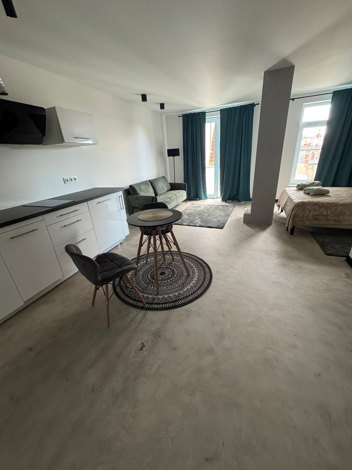 Mūsų meninis rojus pačioje Zielona Góra širdyje – už 5 minučių kelio nuo Rotušės aikštės, promenados ir atmosferinių užkandinių. Šviesus miegamasis, didelė svetainė su atvira virtuve, aukštomis lubomis ir saulės apšviestu balkonu. Vinilinės plokštelės, paveikslai ir unikali Hi-Fi įranga sukuria šios vietos sielą. Netoli džiazo klubo, vynuogyno, teatro ir filharmonijos. Nemokama automobilių stovėjimo aikštelė. Netoliese viskas.