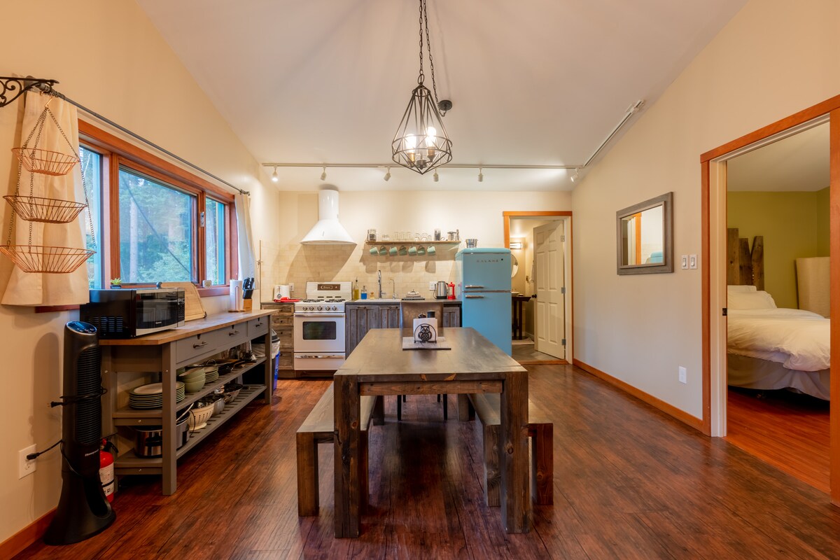 Ši maža Šiaurės šalių įkvėpta trobelė yra netoli visko, bet ramioje vietoje netoli miesto, pėsčiomis nuo Aukso dangaus tilto, 5 min. kelio automobiliu iki miesto centro ir už 15 min. kelio automobiliu iki Kickinghorse slidinėjimo kurorto. Šioje gražioje trobelėje yra dviejų degiklių viryklė, skirta jūsų maistui gaminti, ir mini malkomis kūrenama viryklė, kad jaustumėtės jaukiai. Šiaurės šalių trobelėje yra viskas, ko reikia, yra nedidelis jaukus pėdsakas. Puiki vieta pailsėti ir atjaunėti po auksinio nuotykio. Mėgaukitės!