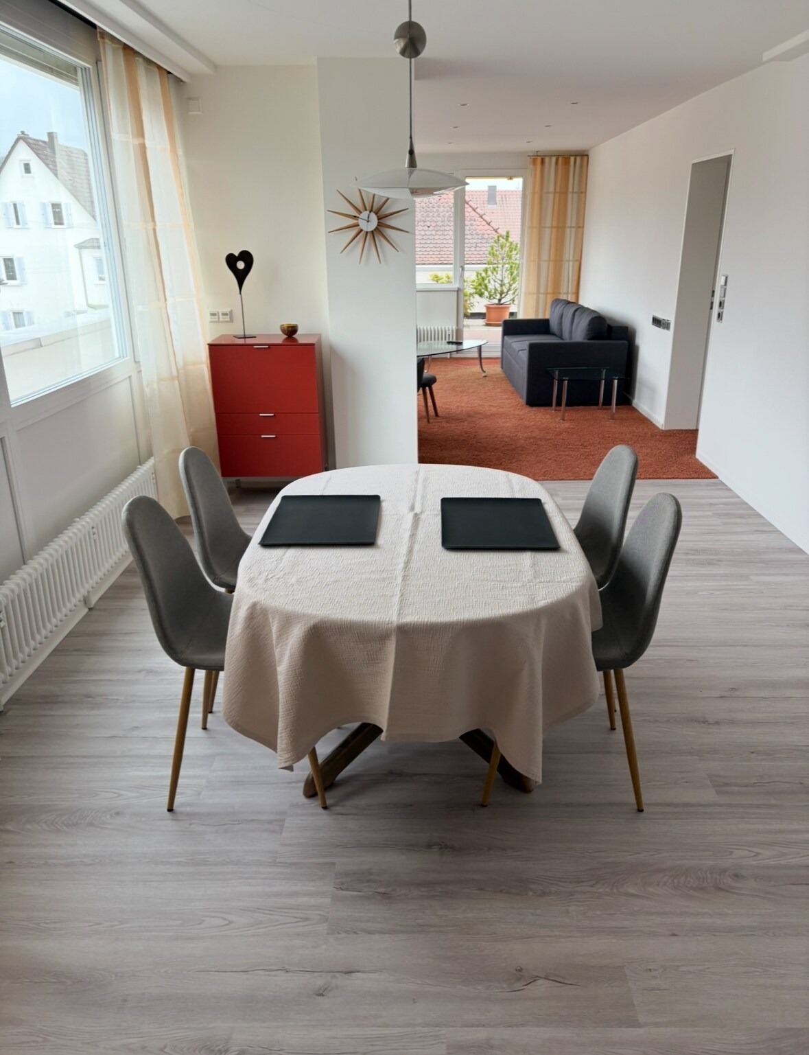 Mūsų „Wolke10“ yra skoningai įrengtas, renovuotas seno pastato butas su parketu ir tinko lubomis atsipalaidavimui ir stilingai viešnagei Niurtingene. - Centrinėje vietoje, 2 aukšte. - pėsčiųjų zonoje ir dar tyliai. - Netoliese esantis prekybos centras, restoranai, kavinės, ledų salonai - Traukinių stotis pėsčiomis - Dienos šviesos vonia - Atskiras tualetas. - Wi-Fi - išmanusis televizorius - pilnai įrengta virtuve. - du miegamieji su dvigulėmis lovomis - Didelis, šviesus svetainė/valgomasis