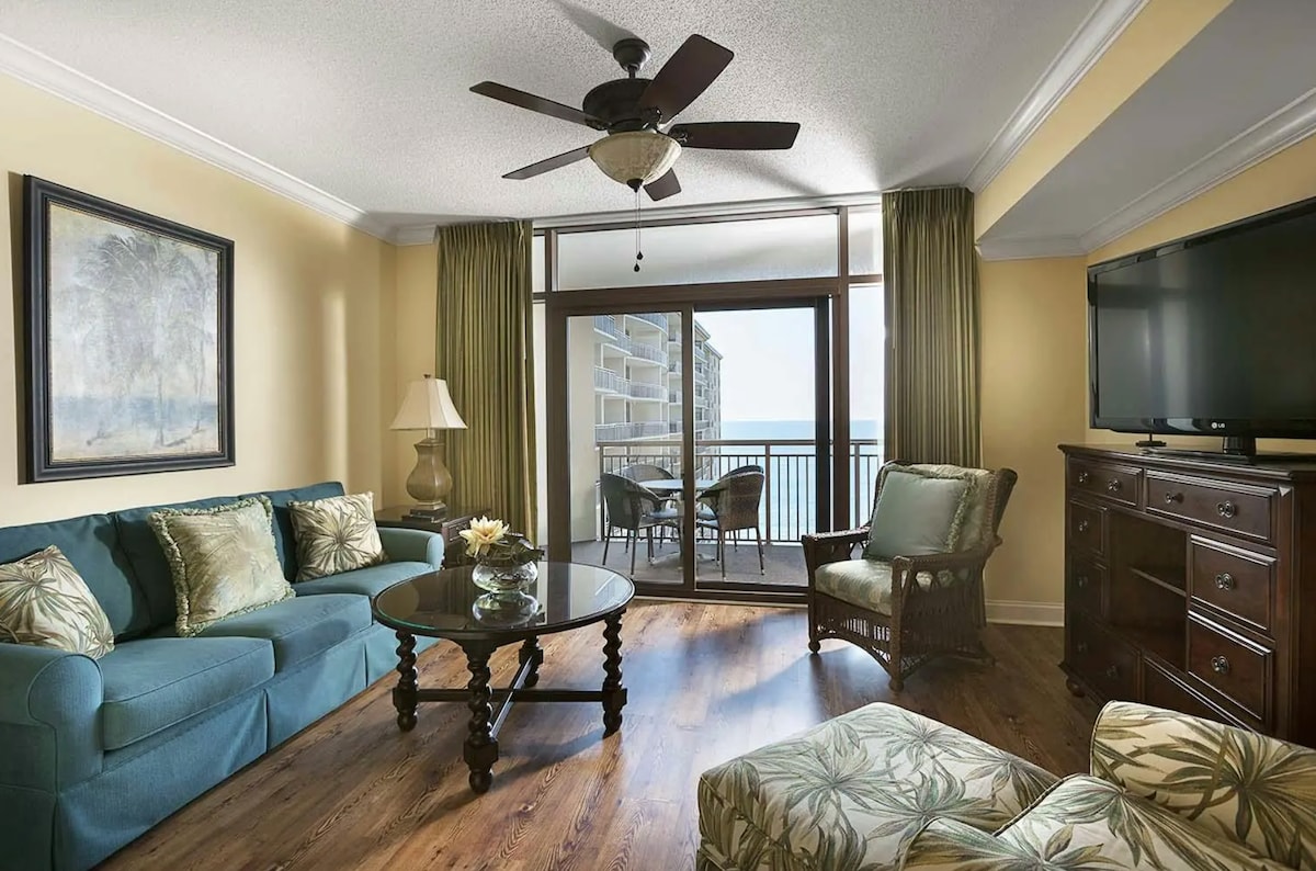Pasiduokite palaimai šiame prabangiame 2 miegamųjų kondominiume prie vandenyno energingame Šiaurės Myrtle paplūdimyje! Mėgaukitės modernia elegancija su gurmaniška virtuve, raminančia sūkurine vonia, privačiu balkonu su nuostabiu vaizdu į vandenyną ir patogia skalbykle/džiovykle. Pasinerkite į kurorto jaudulį: du vidaus baseinai, trys lauko baseinai, vingiuota tinginė upė, aštuonios burbuliuojančios sūkurinės vonios ir aukščiausios klasės treniruoklių centras. Žingsniai nuo smėlėtų krantų ir pasaulinio lygio golfo aikštynų žada nepamirštamą pabėgimą prie jūros.