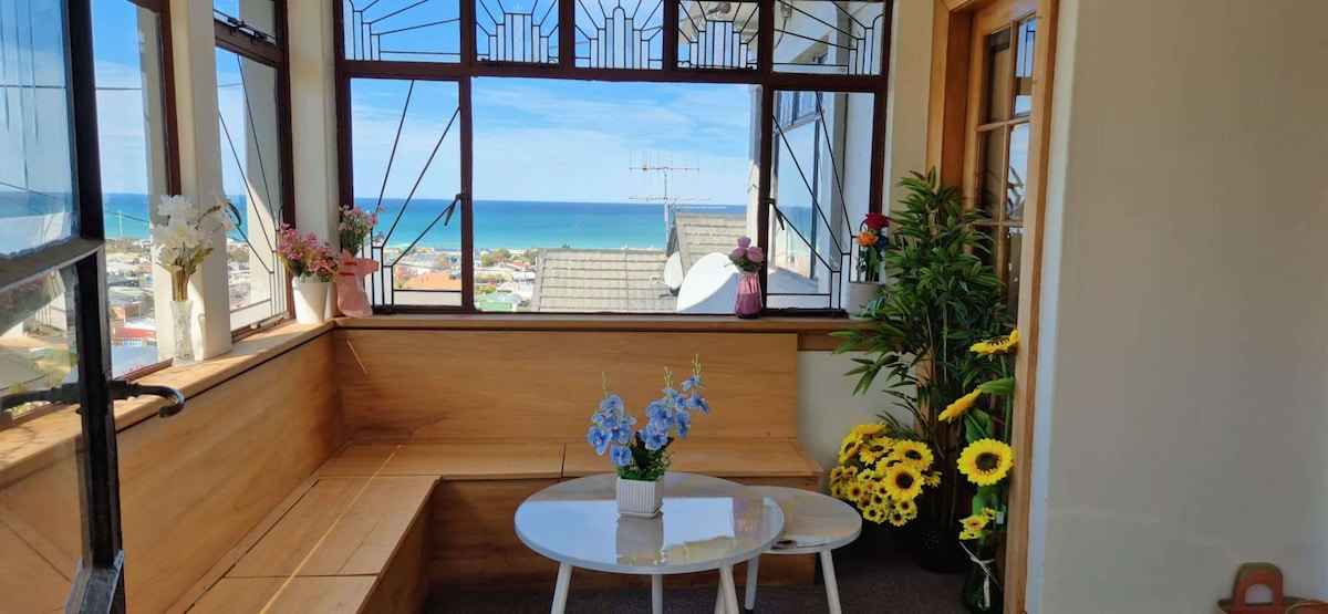 Vaizdas į jūrą, namas ant kalvos. Miesto centras.