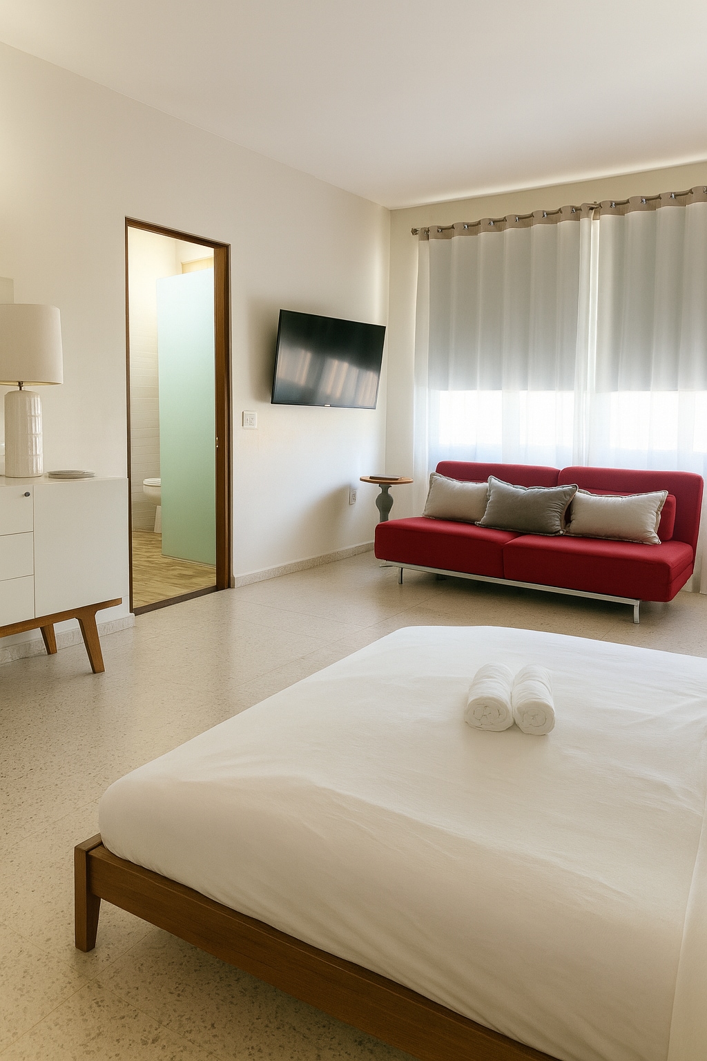 Patirkite atogrąžų paplūdimio nuotaiką mūsų švariame ir jaukiame 2 miegamųjų boho bute Okean parke. Vos už vieno kvartalo nuo paplūdimio galite pradėti dieną rytiniu bėgimu ir nuostabiu vaizdu į Karibų jūrą. Atsipalaiduokite mūsų didelėje lapuotoje terasoje, kur vandenyno vėjas jus atgaivins mėgaudamiesi rytine kava ir planuodami nuotykius. Bute yra pilnai įrengta virtuvė su espreso aparatu, du miegamieji su dvigulėmis lovomis ir vienas vonios kambarys, kuriame rasite visus patogumus, reikalingus puikiai viešnagei.