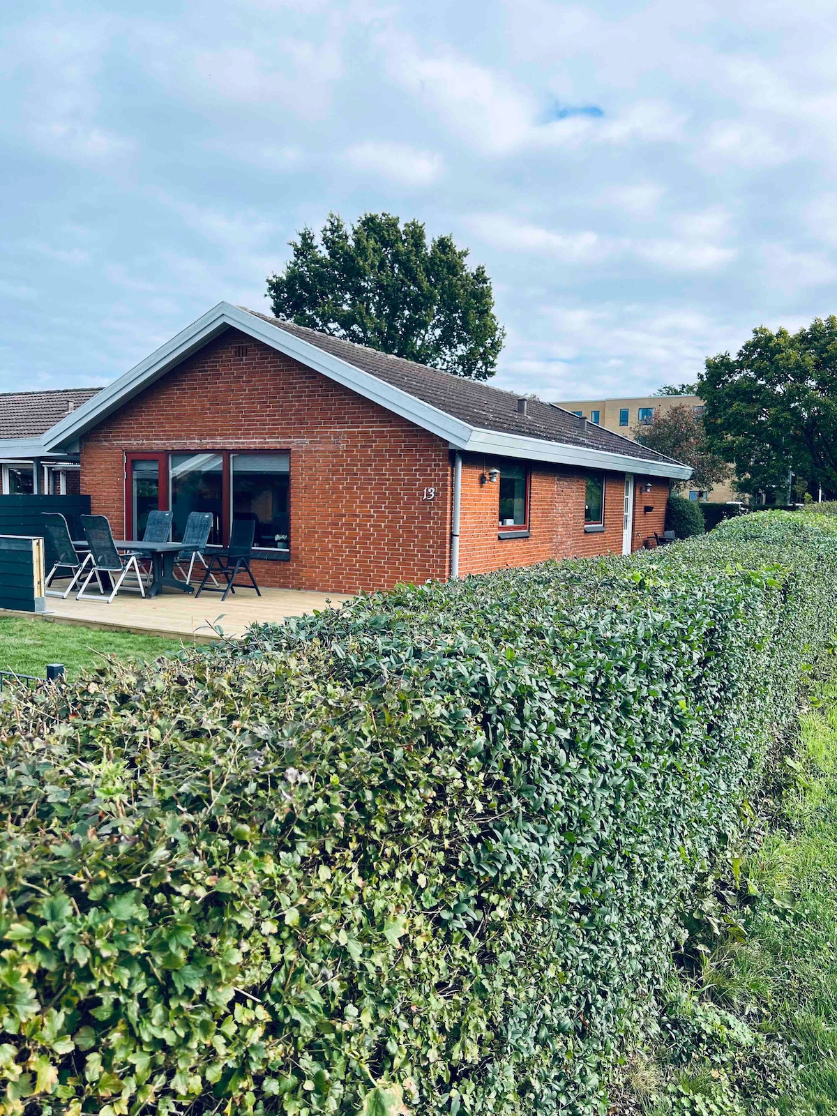 Moderniseret og charmerende enderækkehus i fredeligt, afslappende og familievenligt miljø med grønne områder og 200m til stranden