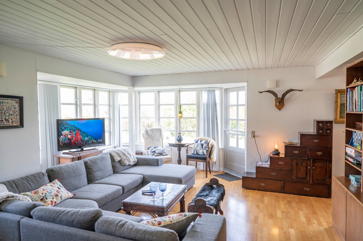 Paprastas gyvenimas prie fjordo Namas yra nuo 1969 metų. Mūsų aistra - interjero dizainas ir derliaus nuėmimas, todėl tikimės, kad mėgausitės namo vidumi, aplinkiniais laukais, fjordu ir dideliu sodu. Jokio televizoriaus signalo, jokio mėsainio. Jokių gatvės šviesų. Paklausykite paukščių, plaukite nuo maudyklos bendraamžių, pastatykite laužą, atlikite keramiką arba apsilankykite kai kuriose puikiose vietovėse. Arba pirkite šviežius kiaušinius, daržoves, uogas ir vaisius vietiniame ūkyje.