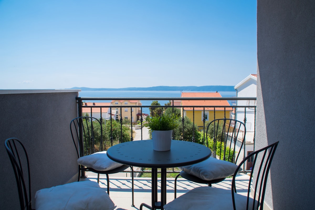 Modernus butas su balkonu, sukurtu nepamirštamiems saulėlydžiams virš atviros Adrijos jūros ir Šoltos salos, iš kurio atsiveria žvilgsnis į Brač ir Hvar salas. Kitoje gatvės pusėje rasite vietinę maisto vietą, o parduotuvės ir restoranai yra už maždaug 1 km. Romantiškas ir patogus pasirinkimas poroms ar šeimoms, norinčioms mėgautis vaizdu į jūrą ir tyrinėti netoliese esantį istorinį Trogirą.